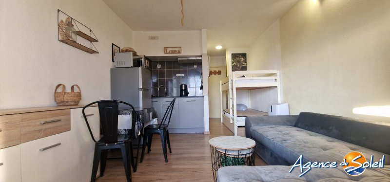 A seulement 5 minutes de la plage, venez visiter ce studio avec parking dans résidence avec ascenseur. Il vous offre une très belle vue sur la mer depuis son balcon exposé plein Sud, pièce à vivre agréable et lumineuse avec espace cuisine, salle d'eau wc avec machine à laver. Appartement lumineux et très agréable avec emplacement de parking privatif au pied de l'immeuble. Contactez Maïté BLONDEL pour une visite au 06.20.59.19.63 AGENCE DU SOLEIL CANET 04.68.80.37.43 Honoraires à la charge du vendeur. Dans une copropriété de 95 lots. Quote-part moyenne du budget prévisionnel 954,88 /an. Aucune procédure n'est en cours. Classe énergie C, Classe climat A Montant moyen estimé des dépenses annuelles d'énergie pour un usage standard, établi à partir des prix de l'énergie de l'année 2021 : entre 477.00 et 645.00 . Les informations sur les risques auxquels ce bien est exposé sont disponibles sur le site Géorisques : georisques.gouv.fr. . Retrouvez tous nos biens sur www.agencedusoleil.com