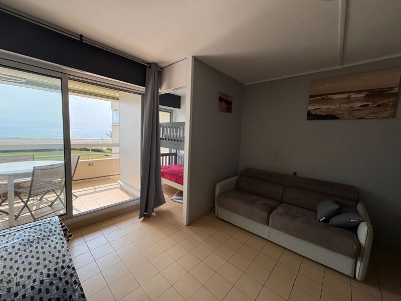 Une cabine est aménagée d'un lit superposé et le salon d'un clic-clac qui permet le couchage de 4 personnes dans l'appartement.