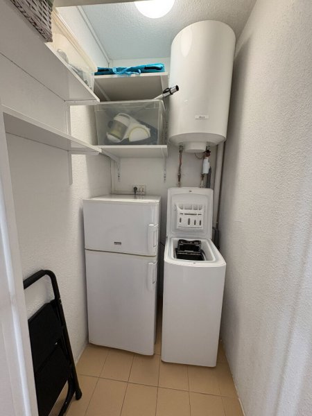 Il dispose d'une entrée desservant la pièce à vivre avec kitchenette aménagée et équipée semi-ouverte. Une buanderie attenante permet le rangements et l'emplacement de la machine à laver.