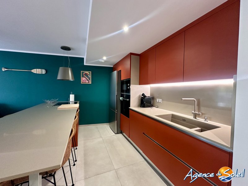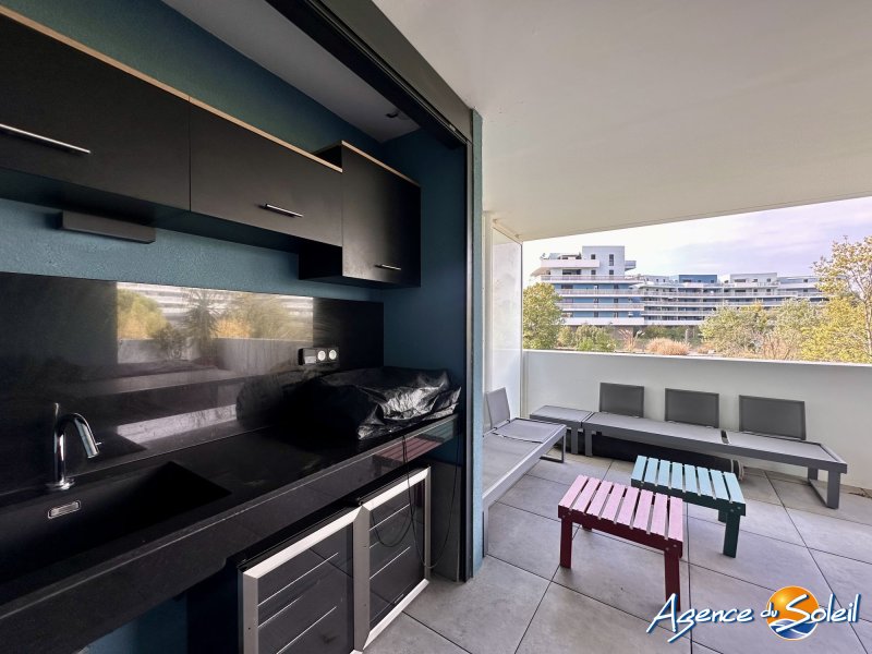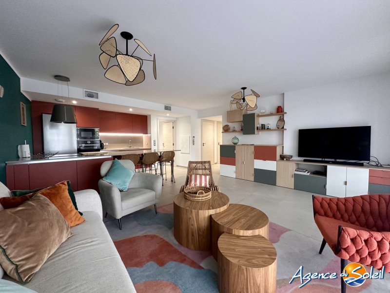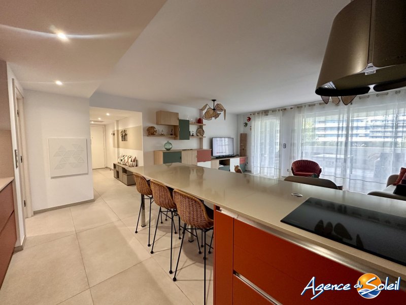 MAGNIFIQUE T3 RÉCENT AVEC GRANDE TERRASSE, GARAGE ET VUE DÉGAGÉE Situé dans une résidence récente de 2023, sécurisée avec local vélos, ce très bel appartement T3 allie modernité, confort et luminosité. Il se compose d'une spacieuse pièce de vie donnant sur une très grande terrasse avec une belle vue dégagée. La cuisine de qualité est entièrement équipée avec des équipements modernes et fonctionnels. Deux chambres spacieuses, chacune avec son propre dressing, offrant de nombreux rangements donnant également sur la terrasse. Une salle d'eau contemporaine, des WC séparés, ainsi qu'un cellier/buanderie complètent ce bien. Un garage fermé en RDC est inclus dans la vente. Vous apprécierez le calme de l'environnement tout en étant à proximité immédiate des commerces. Aucuns travaux à prévoir! Ce bien rare sur le marché est à visiter sans tarder. Coup de coeur garanti! Contactez Maïté Blondel au 06.20.59.19.63 AGENCE DU SOLEIL CANET 04.68.80.37.43 Honoraires à la charge du vendeur. Dans une copropriété de 76 lots. Quote-part moyenne du budget prévisionnel 1 194,53 /an. Aucune procédure n'est en cours. Classe énergie A, Classe climat A Montant moyen estimé des dépenses annuelles d'énergie pour un usage standard, établi à partir des prix de l'énergie de l'année 2021 : entre 290.00 et 440.00 . Les informations sur les risques auxquels ce bien est exposé sont disponibles sur le site Géorisques : georisques.gouv.fr. . Retrouvez tous nos biens sur www.agencedusoleil.com