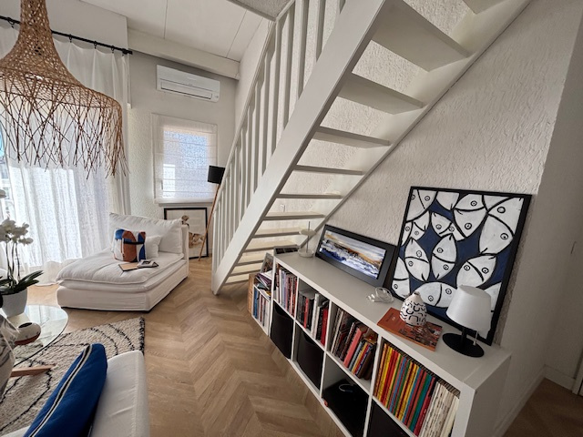 OPPORTUNITÉ EXCLUSIVE ! Superbe appartement entièrement rénové, situé au dernier étage avec ascenseur, offrant une vue panoramique exceptionnelle sur la marina, le port de Canet et les montagnes catalanes. Emplacement idéal : à 2 minutes de l'aquarium, des restaurants de plage et des commerces. Vous serez immédiatement charmé par sa cuisine indépendante moderne, spacieuse et lumineuse, dotée d'une grande baie vitrée ouvrant sur la marina. La pièce de vie traversante et climatisée, baignée de lumière, s'ouvre sur une loggia ensoleillée avec double vue mer et port. Le bien comprend également une cabine, une salle d'eau élégante avec douche à l'italienne, ainsi qu'un WC séparé avec lave-mains. À l'étage, une chambre en mezzanine au style chaleureux vous attend, avec salle de bain privative et rangements, offrant un véritable espace cocooning. Rénové avec goût et intelligence, cet appartement des années 1980 allie charme, optimisation de l'espace et prestations de qualité. Les plus : double vitrage, ascenseur, digicode, place de parking sécurisée. Un bien coup de coeur, parfait pour une résidence principale, secondaire ou un investissement locatif haut de gamme. Bonjour,Je souhaiterai obtenir plus d'informations sur ce bien.Merci.