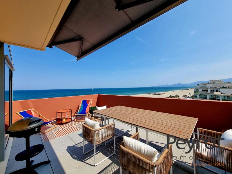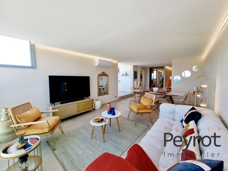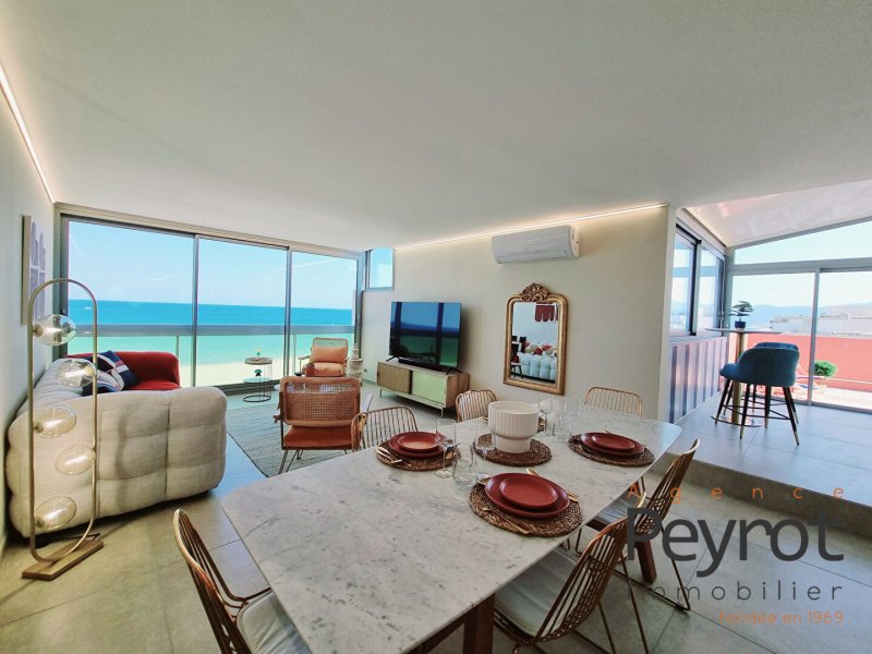 Découvrez cet Appartement avec son solarium entièrement rénové au 7ieme et dernier étage d'une résidence calme et sécurisée. L'appartement séduit par sa décoration, ses prestations haut de gamme, son rooftop pour une superficie habitable de 92 m2 . Hall d entrée lumineux donnant sur la cuisine ouverte et pièce de réception avec vue plongeante sur la mer. 3 chambres avec vue mer, étang et montagne. Une salle d'eau ainsi qu'un wc séparé. Un parking sécurisé en sous sol, une cave, gardien, clim réversible. Commerces à proximité, clubs de plage. L'art de vivre méditerranéen vous attend. Vendu meublé Honoraires à la charge du vendeur. Dans une copropriété de 709 lots. Quote-part moyenne du budget prévisionnel 1 800 /an. Aucune procédure n'est en cours. Classe énergie C, Classe climat A Montant moyen estimé des dépenses annuelles d'énergie pour un usage standard, établi à partir des prix de l'énergie de l'année 2021 : entre 981.00 et 1327.00 . Les informations sur les risques auxquels ce bien est exposé sont disponibles sur le site Géorisques : georisques.gouv.fr. Carte pro. CPI 6601 2016 000 011 595