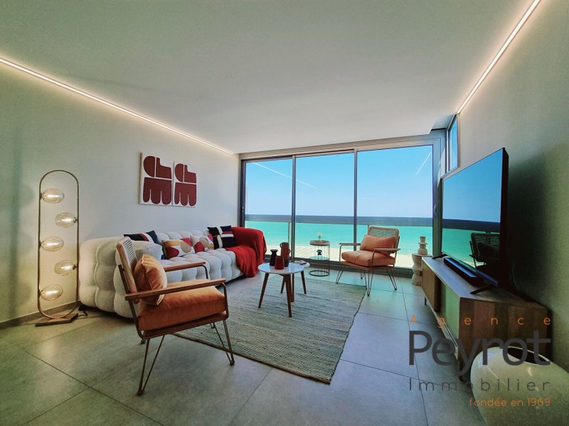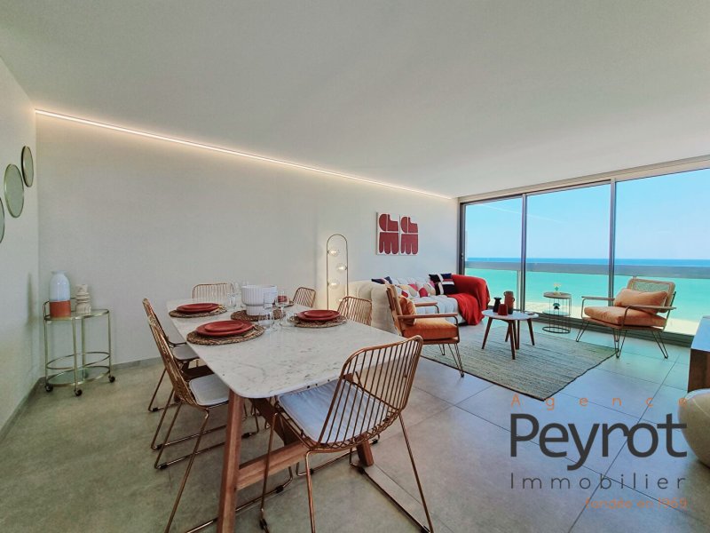 Découvrez cet Appartement avec son solarium entièrement rénové au 7ieme et dernier étage d'une résidence calme et sécurisée. L'appartement séduit par sa décoration, ses prestations haut de gamme, son rooftop pour une superficie habitable de 92 m2 . Hall d entrée lumineux donnant sur la cuisine ouverte et pièce de réception avec vue plongeante sur la mer. 3 chambres avec vue mer, étang et montagne. Une salle d'eau ainsi qu'un wc séparé. Un parking sécurisé en sous sol, une cave, gardien, clim réversible. Commerces à proximité, clubs de plage. L'art de vivre méditerranéen vous attend. Vendu meublé Honoraires à la charge du vendeur. Dans une copropriété de 709 lots. Quote-part moyenne du budget prévisionnel 1 800 /an. Aucune procédure n'est en cours. Classe énergie C, Classe climat A Montant moyen estimé des dépenses annuelles d'énergie pour un usage standard, établi à partir des prix de l'énergie de l'année 2021 : entre 981.00 et 1327.00 . Les informations sur les risques auxquels ce bien est exposé sont disponibles sur le site Géorisques : georisques.gouv.fr. Carte pro. CPI 6601 2016 000 011 595