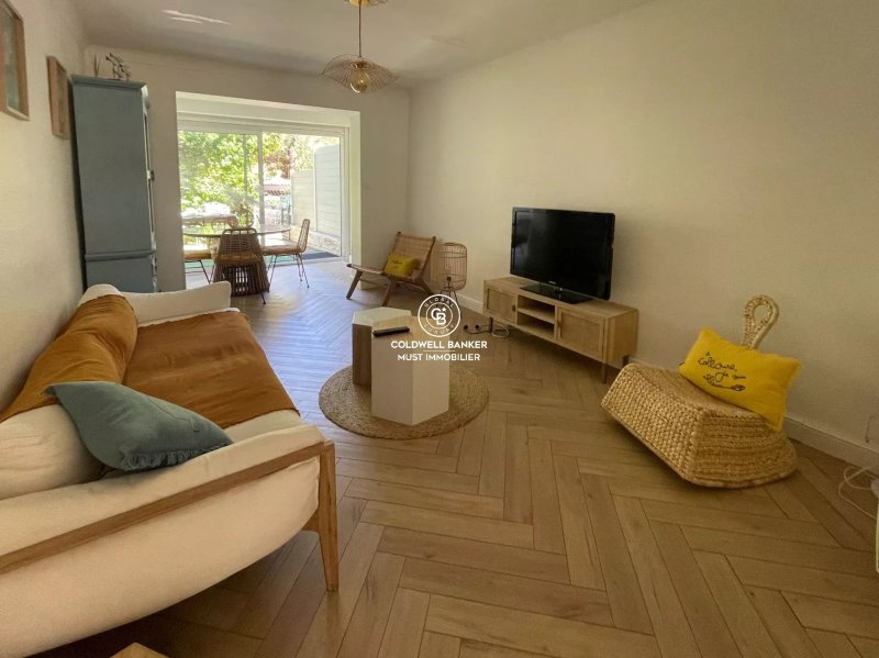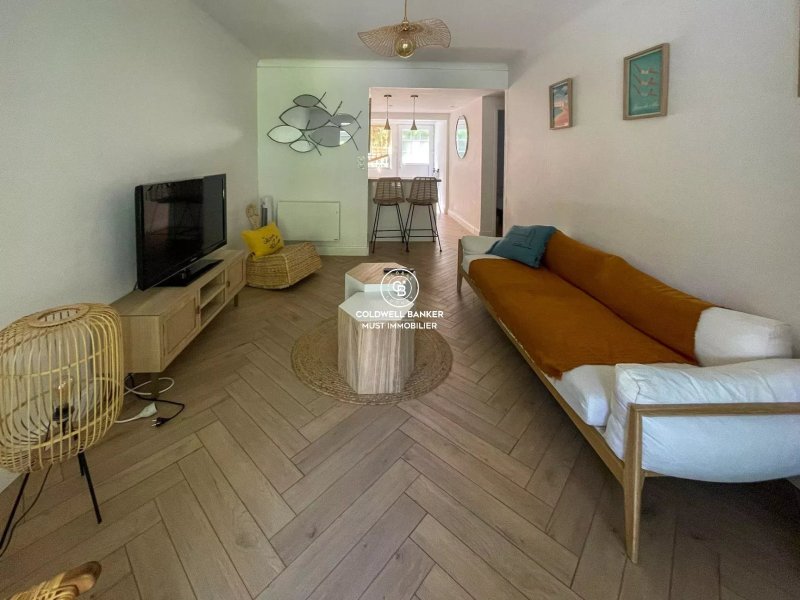 À seulement 5 min des plages et des commodités, environnement calme, bel appartement de plain pied, T3 de 60 m² rénové avec goût, dans une résidence sécurisée.