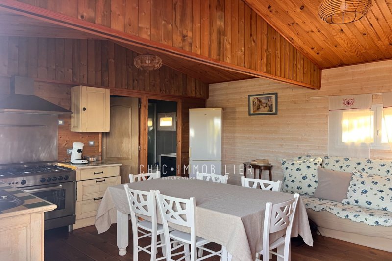 À vendre à Argelès-sur-Mer, dans un site paradisiaque, au calme absolu, offrant une vue Mer, et une grande piscine, situé entre le charmant village de Sorède et Argelès-sur-Mer. Un Chalet d'environ 40 m² et 575 m², avec sa piscine privative, niché dans un environnement arboré. Composé d'une pièce de vie de 20 m², de 2 chambres, d'une salle d'eau avec Wc intégré, et d'une buanderie. Prestations : Vue mer - Grande piscine - Climatisation réversible - Double vitrage - Rangement