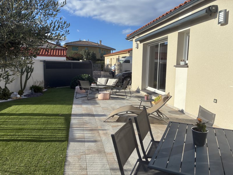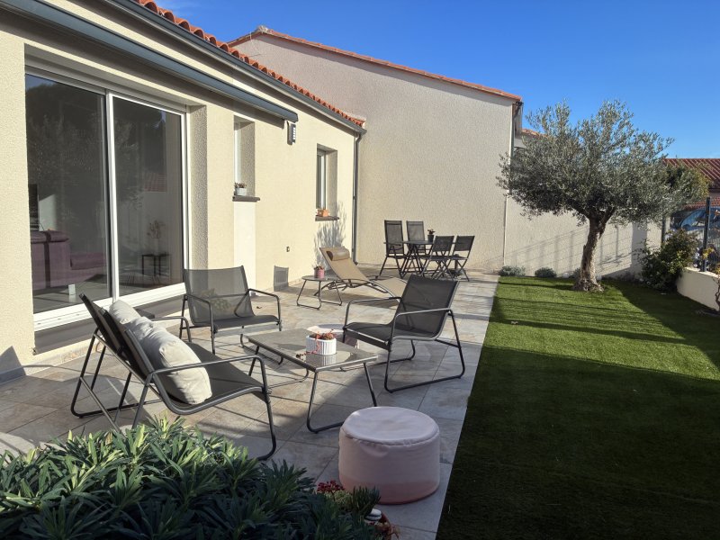 ARGELÈS-SUR-MER VILLA CONTEMPORAINE DE PLAIN-PIED 2023, JARDIN, TERRASSE ET GARAGE À ARGELÈS-SUR-MER, dans un secteur calme et recherché proche des axes principaux, découvrez cette villa contemporaine de plain-pied de 91 m2 aux volumes optimisés, idéale en résidence principale ou secondaire. La pièce de vie d'environ 37 m2, baignée de lumière et ouverte sur une terrasse de 35 m2 exposée sud-ouest avec vue sur les Albères, intègre une cuisine équipée de 13 m2, conviviale et fonctionnelle. L'espace nuit est composé de trois chambres avec placards intégrés, dont une suite parentale avec dressing et salle d'eau privative, ainsi qu'une salle de bain moderne avec douche à fond plat, WC suspendus et sèche-serviettes. Construction traditionnelle de qualité avec charpente métallique, climatisation gainable réversible (DPE A), carrelage dans toutes les pièces, faïence murale dans les salles d'eau et accès facilité PMR. Garage de 15 m2 avec coin buanderie et accès aux combles. Le jardin paysagé bénéficie d'un arrosage automatique et d'un carport permettant de stationner un véhicule supplémentaire tout en conservant le garage pour le rangement. Bien récent, sans travaux, entre village, plages et axes principaux. Contactez Sarah SABATIER, Agence Domians Immobilier Argelès-sur-Mer : 04 68 21 50 34 / 06 16 63 20 73. « Les informations sur les risques auxquels ce bien est exposé sont disponibles sur le site Géorisques : www.georisques.gouv.fr »