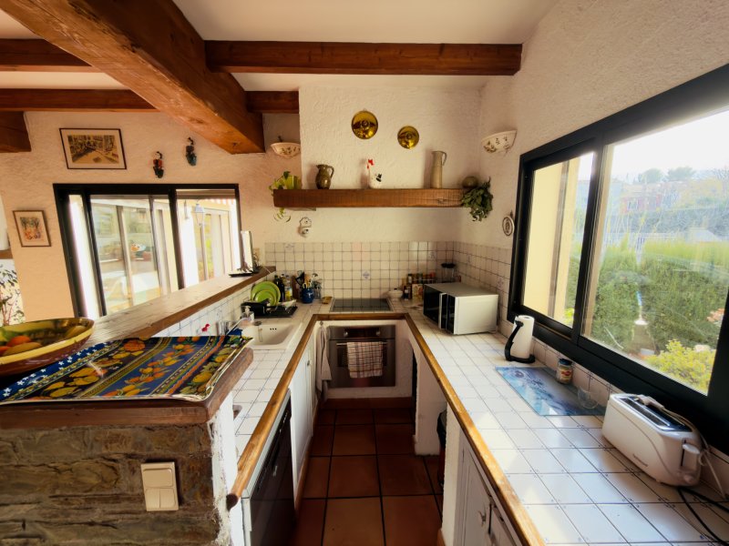 Venez découvrir cette charmante villa 4 faces, située sur le secteur du village d'Argelès-sur-Mer, dans une impasse calme, proches des commerces et de toutes commodités ! Elle dispose en rez-de-chaussée d'une entrée, d'un séjour avec cuisine ouverte d'environ 57 m2 donnant sur une terrasse exposé plein SUD et d'un grand GARAGE d'environ 63 m2. Coté nuit, la villa vous offre deux chambres dont une avec salle d'eau, une salle de bains et un WC indépendant. En sous-sol se trouve une grande pièce d'environ 24 m2 et d'une chambre avec salle d'eau. La parcelle permet d'accueillir plusieurs stationnements en plus du garage. Vous disposez également de la possibilité de rentrer un CAMPING-CAR dans le garage. Le jardin est arboré et paysagé et la villa dispose d'une belle PISCINE avec un POOL-HOUSE, une cuisine d'été, un coin barbecue et une dépendance d'environ 11 m2 ! De plus elle comporte certaines prestations comme la climatisation réversible, une cheminée, des stores banes électrique, deux portes de garage motorisées, double vitrage, store roulant électrique, ... Particularité : La parcelle permet une extension d'environ 100 m2 constructible au sol en plus de la villa déjà existante ! N'attendez plus, une visite s'impose ! Contactez notre agence TECH IMMOBILIER au 04.68.81.09.01 pour plus de renseignements !