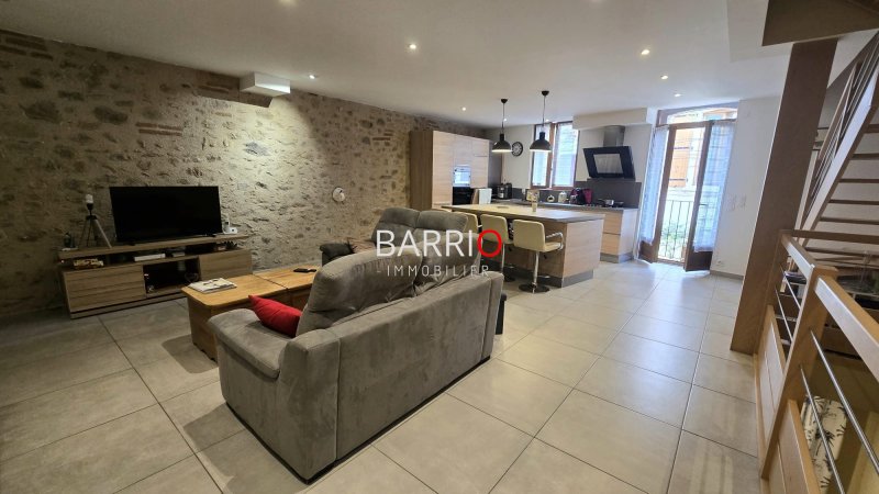 Située en plein coeur du village, cette maison traversante entièrement rénovée en 2014 vous séduira par son cachet et ses volumes généreux. Dès l'entrée, vous découvrirez un spacieux garage de plus de 50 m², idéal pour le stationnement, le stockage ou un espace atelier, complété par une buanderie fonctionnelle. À l'étage, une grande pièce de vie d'environ 50 m² baignée de lumière accueille salon, salle à manger et cuisine ouverte dans une ambiance conviviale et chaleureuse. Côté nuit, la maison offre une belle suite parentale ainsi que trois autres chambres confortables, parfaites pour accueillir famille et amis ou aménager un espace bureau selon vos besoins. Le tout s'ouvre sur un agréable toit-terrasse, un véritable atout pour profiter des beaux jours en toute tranquillité. Répartie sur deux niveaux, cette maison ne nécessite aucun travaux : vous n'avez plus qu'à poser vos valises. Honoraires inclus de 5.23% TTC à la charge de l'acquéreur. Prix hors honoraires 287 000 . Classe énergie C, Classe climat A Montant estimé des dépenses annuelles d'énergie pour un usage standard : entre 1085.00 et 1469.00 sur les années 2021, 2022 et 2023 (abonnements compris). Les informations sur les risques auxquels ce bien est exposé sont disponibles sur le site Géorisques : georisques.gouv.fr.