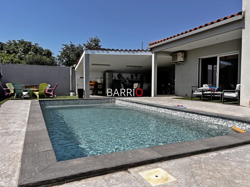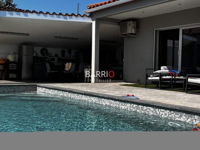Villa de standing avec piscine et jardin - Un havre de paix et de luxe Découvrez cette magnifique villa de standing, construite en 2012, qui allie élégance et modernité. Avec ses 160 m² de surface habitable, cette propriété est un véritable écrin de bien-être et de confort. Imaginez-vous dans un spacieux séjour de 59 m², baigné de lumière grâce à ses grandes ouvertures en aluminium à double vitrage. La cuisine américaine, aménagée et équipée, est un véritable atout pour les amateurs de cuisine et de convivialité. Les 4 chambres, réparties sur deux niveaux, offrent des espaces intimes et chaleureux. Le rez-de-chaussée se compose d'une salle de bains et d'une salle d'eau, tandis qu'à l'étage, vous trouverez une deuxième salle d'eau. Les deux WC indépendants assurent un confort optimal pour toute la famille. Le chauffage individuel garantit une température agréable en toute saison. L'extérieur est tout aussi enchanteur avec un jardin verdoyant et une piscine de 7x3 mètres, carrelée et équipée d'un système de filtration au sel. Profitez des beaux jours dans ce cadre idyllique, parfait pour se détendre et s'amuser. Le stationnement est assuré avec 2 places intérieures et 2 places extérieures. Cette villa, en excellent état, est située dans un quartier résidentiel calme et prisé. Elle est éligible à la fibre optique, offrant ainsi un confort technologique optimal. À proximité, vous trouverez plusieurs commodités : des crèches, des écoles maternelles et élémentaires, des collèges, des restaurants, des commerces d'alimentation générale, des médecins généralistes, des parcs et jardins, et des hôpitaux. Les transports en commun sont également accessibles à pied ou en voiture. Ne manquez pas cette opportunité de vivre dans une villa de standing, alliant luxe, confort et praticité. Contactez-nous dès maintenant pour une visite et laissez-vous séduire par cette propriété exceptionnelle. Honoraires inclus de 2300% TTC à la charge de l'acquéreur. Prix hors honoraires 20 000 . DPE en cours. Les informations sur les risques auxquels ce bien est exposé sont disponibles sur le site Géorisques : georisques.gouv.fr.