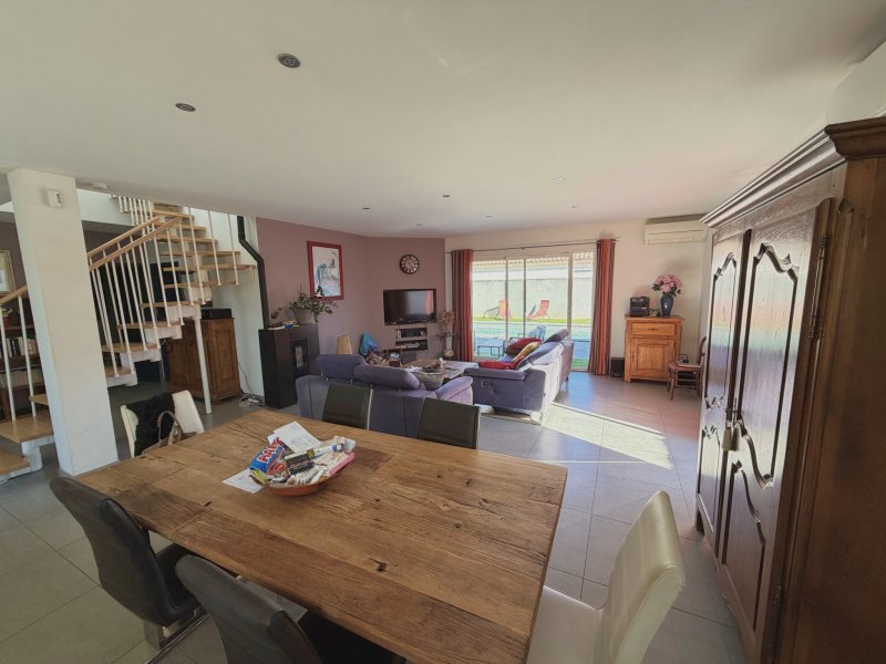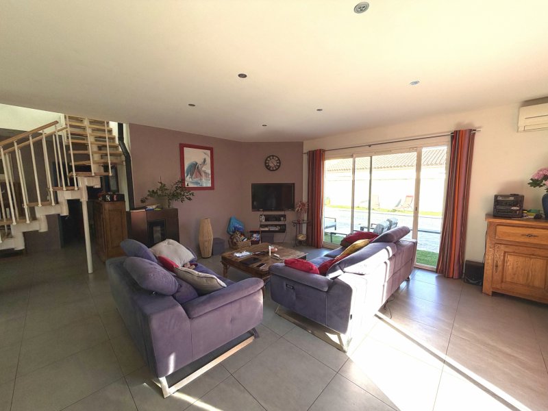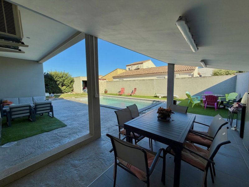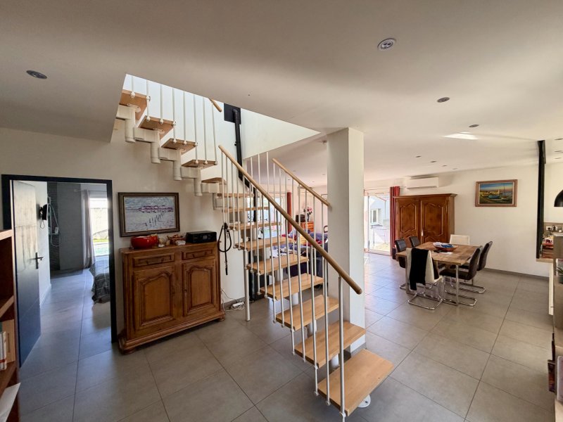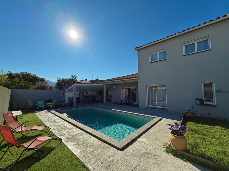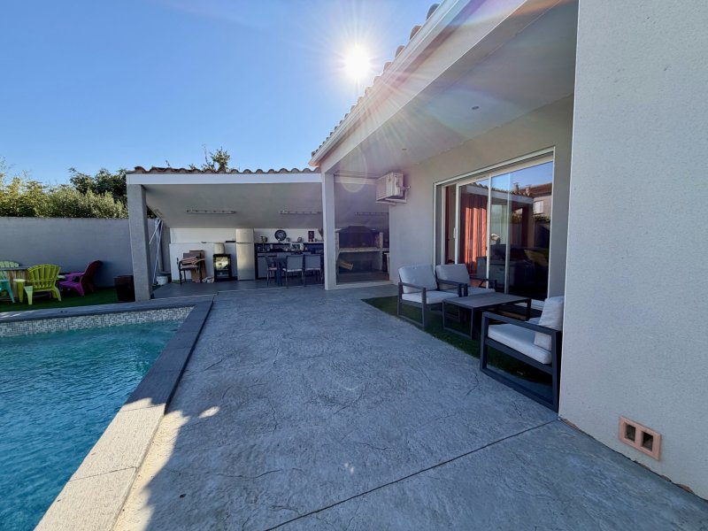 Venez découvrir cette charmante villa 3 FACES d'environ 160 m2, située sur le secteur VILLAGE, proche des commerces, des commodités et à quelques minutes des plages ! En rez-de-chaussée, elle vous offre une belle pièce de vie lumineuse avec cuisine ouverte, équipée et aménagée, donnant sur un espace détente avec Piscine, POOL HOUSE et Barbecue. Vous disposerez également de deux suites parentales dont une avec balnéo, un WC indépendant, une buanderie, et un DOUBLE GARAGE d'environ 46 m2. A l'étage, coté nuit, vous disposerez de deux autres chambres avec dressing, une salle d'eau et un WC indépendant. La villa a été construite en 2012 sur une parcelle de 600 m2 avec deux places de stationnements privative situés devant le double garage et elle dispose de nombreuses prestations comme la climatisation réversibles dans toutes les pièces, fenêtre en double vitrage, panneau photovoltaïque, et bien d'autres... Le jardin est paysagé et nécessite peu d'entretient ! N'attendez pas, une visite s'impose ! Contactez notre agence TECH IMMOBILIER au 04.68.81.09.01 pour plus de renseignements !