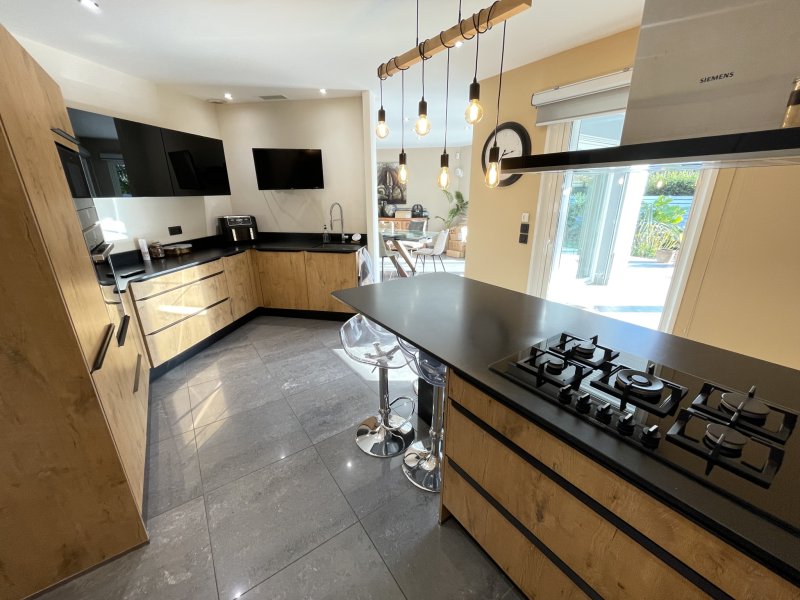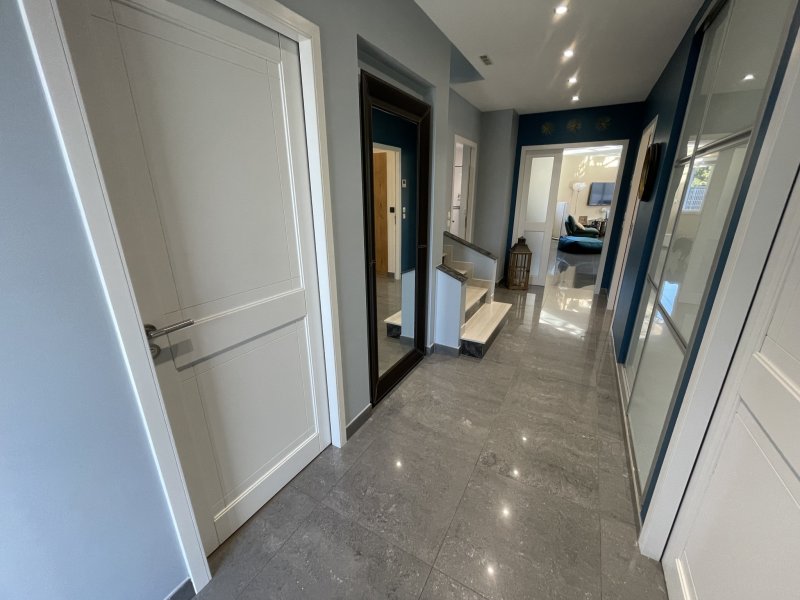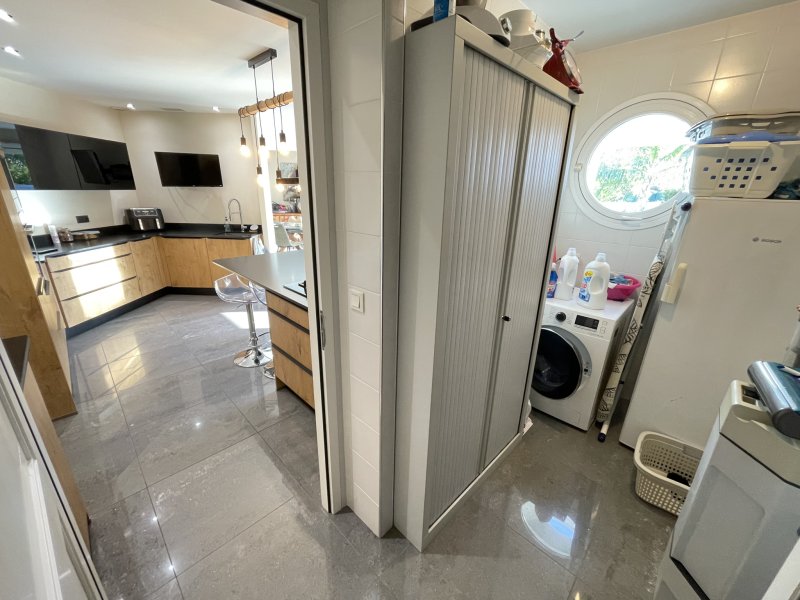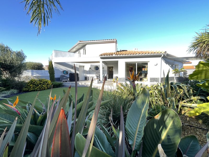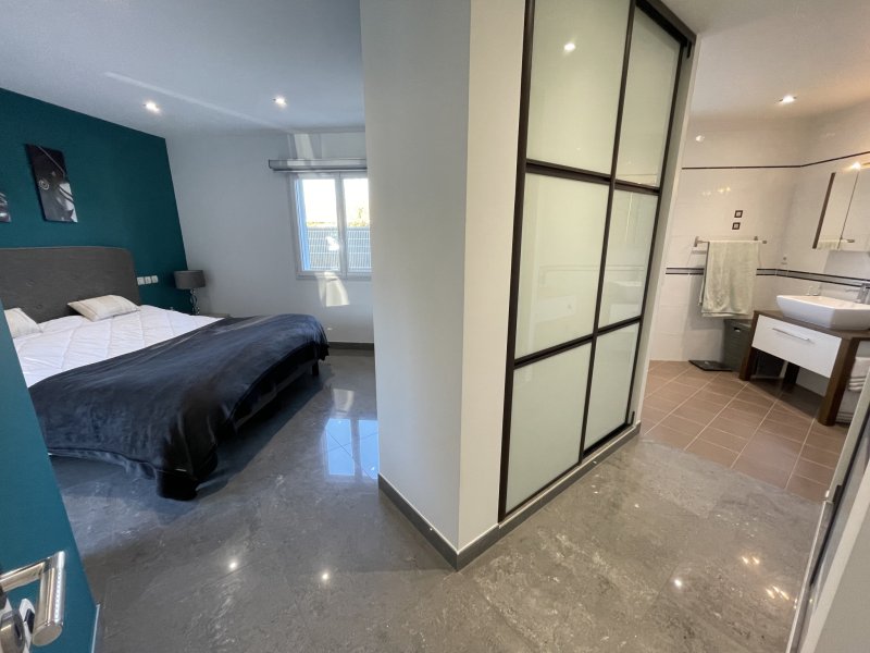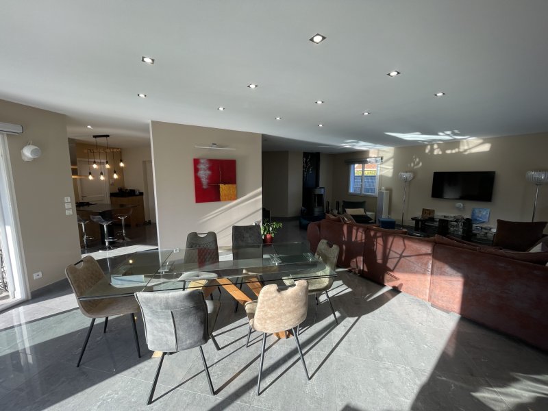 Belle propriété idéalement située entre les plages et le village d'Argeles sur mer. Quartier calme en impasse, découvrez cette confortable villa contemporaine. Totalisant 153m2 habitable sur une parcelle de 620m2, elle est de construction traditionnelle. Dans un état impeccable, elle dispose d'une grande suite parentale en rez de jardin, un volumineux salon, une cuisine aménagée et équipée de très bonne facture. Buanderie et Garage carrelé/isolé A l'étage, 2 chambres avec placard avec vue sur le massif montagneux du solarium. Salle d'eau avec fenêtre. Maison dans un état impeccable, aucuns travaux à prévoir. Volets roulants centralisés et logement entièrement climatisé. Eclairage à LED et aspirateur centralisé.