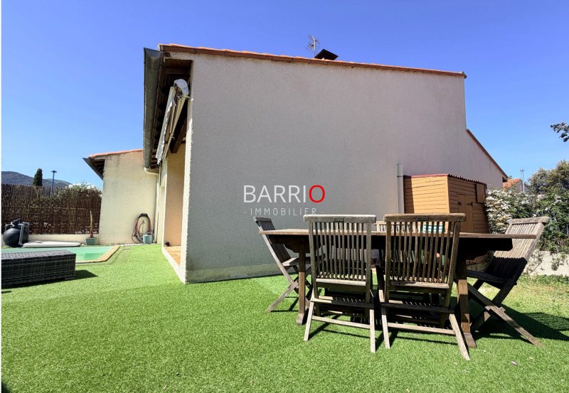 Située dans un quartier résidentiel calme d'Argelès-sur-Mer, cette agréable villa d'une belle vue sur le massif des Albères. Au rez-de-chaussée, vous découvrirez une lumineuse pièce de vie climatisée ouvrant directement sur un espace extérieur avec une petite piscine, La cuisine indépendante donne accès à un second espace extérieur. Toujours au rez-de-chaussée, la maison dispose d'une chambre, d'une salle d'eau, d'un WC séparé ainsi que d'une pièce supplémentaire pouvant être aménagée selon vos besoins. À l'étage, vous trouverez deux chambres supplémentaires, une salle d'eau avec WC et un espace ouvert pouvant accueillir un bureau ou un couchage d'appoint. La parcelle permet le stationnement d'un véhicule. Honoraires inclus de 5.08% TTC à la charge de l'acquéreur. Prix hors honoraires 295 000 . Classe énergie C, Classe climat A Montant moyen estimé des dépenses annuelles d'énergie pour un usage standard, établi à partir des prix de l'énergie de l'année 2021 : entre 1030.00 et 1460.00 . Les informations sur les risques auxquels ce bien est exposé sont disponibles sur le site Géorisques : georisques.gouv.fr.