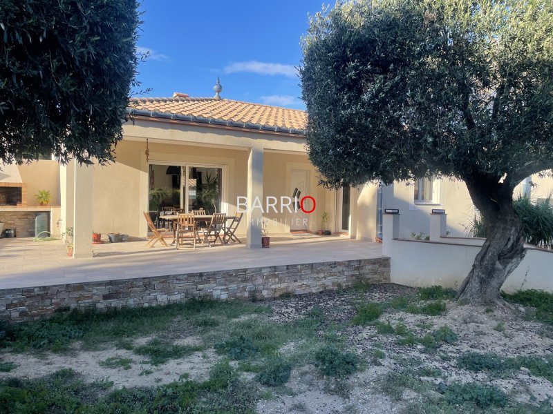Dans l'un des quartiers les plus prisés d'Argelès-sur-Mer, cette élégante villa achevée en 2006 offre de beaux volumes, un confort moderne et un potentiel remarquable. Implantée sur un vaste jardin baigné de soleil et agrémenté d'oliviers matures, la maison bénéficie d'une exposition sud-ouest idéale et d'une luminosité exceptionnelle toute la journée. L'ensemble du bien est équipé de volets électriques et d'un système de domotique centralisée, garantissant un confort optimal au quotidien. Ce bien d'exception compte cinq chambres réparties entre la maison principale comprenant trois chambres avec la possibilité d'aménager une quatrième et une annexe dotée de deux chambres, chaque espace profitant de grandes baies vitrées et de la climatisation. La maison principale, entièrement de plain-pied et baignée de lumière, séduit avec sa cheminée contemporaine et son agencement fluide donnant sur une superbe terrasse de 50 m² dotée d'un barbecue et d'un évier intégrés, parfaite pour profiter d'un art de vivre dedans-dehors. L'annexe peut être transformée aisément en logement totalement indépendant grâce à son accès privatif depuis la rue perpendiculaire via un portail électrique, idéal pour recevoir, générer un revenu locatif ou accueillir plusieurs générations. La propriété dispose d'ailleurs de portails électriques des deux côtés, renforçant la praticité et la sécurité des accès. Un garage, la possibilité d'installer une piscine et la qualité générale de la construction font de cette villa une opportunité rare dans un secteur de premier choix. Classe énergie B, Classe climat A Montant estimé des dépenses annuelles d'énergie pour un usage standard : entre 951.00 et 1287.00 sur les années 2021, 2022 et 2023 (abonnements compris). Les informations sur les risques auxquels ce bien est exposé sont disponibles sur le site Géorisques : georisques.gouv.fr.