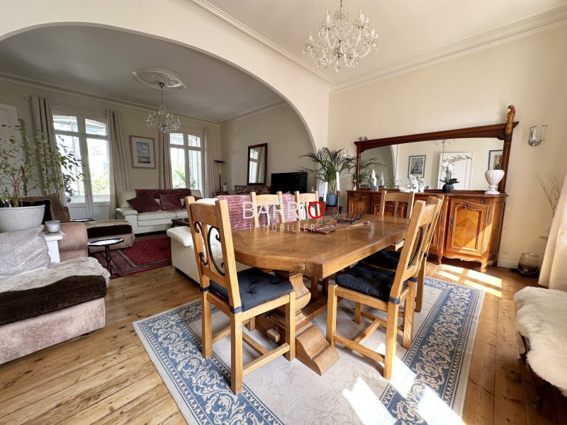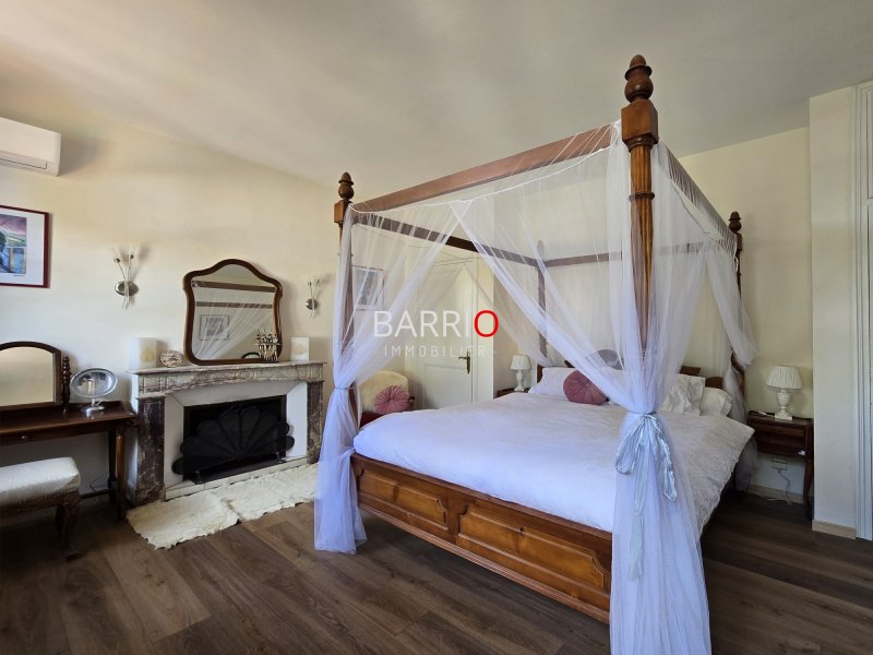 C'est entre la plage et le village d'Argelès-sur-Mer que se situe cette demeure de prestige. Elle se compose d'un vaste salon-séjour traversant, de quatre chambres, d'un bureau, d'une salle de bain et de deux salles d'eau. Ses hauts plafonds ornés de moulures, ses volumes généreux et l'utilisation de matériaux nobles lui confèrent un charme unique, au caractère singulier. Un sous-sol avec cave vient compléter l'habitation. À l'extérieur, le jardin paysager offre de multiples espaces intimistes. Plusieurs terrasses, une cuisine d'été couverte, une piscine, une salle de sport, un garage et un carport complètent l'ensemble. La localisation permet de tout faire à pied et concilie confort, élégance et qualité de vie. Honoraires inclus de 4.94% TTC à la charge de l'acquéreur. Prix hors honoraires 850 000 . Classe énergie F, Classe climat F Logement à consommation énergétique excessive. Montant estimé des dépenses annuelles d'énergie pour un usage standard : entre 6452.00 et 8730.00 sur les années 2021, 2022 et 2023 (abonnements compris). Les informations sur les risques auxquels ce bien est exposé sont disponibles sur le site Géorisques : georisques.gouv.fr.
