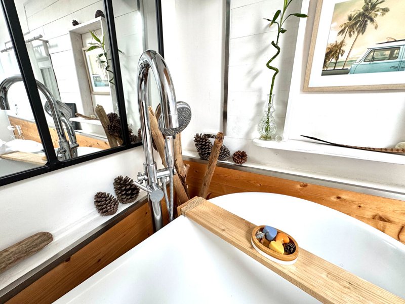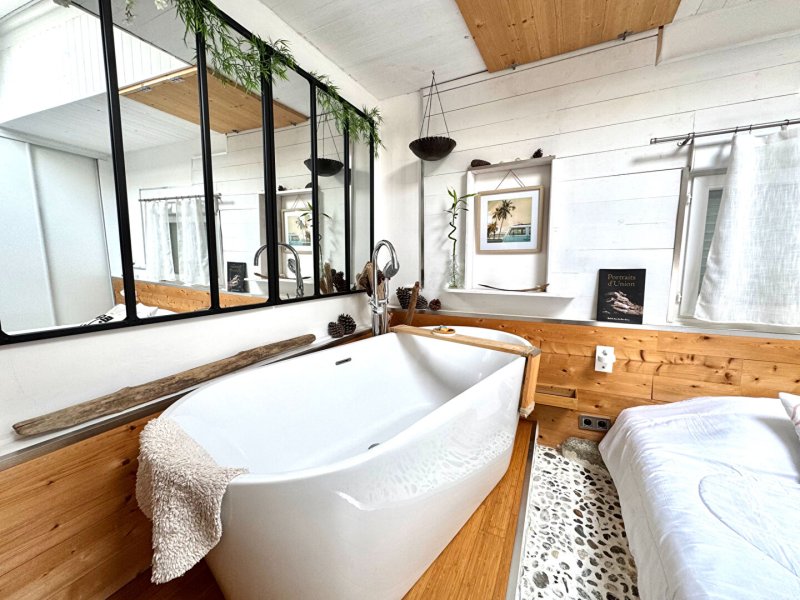 Enfin, au second étage, se révèle une suite parentale lumineuse avec grande baignoire, vasque et WC intégrés.