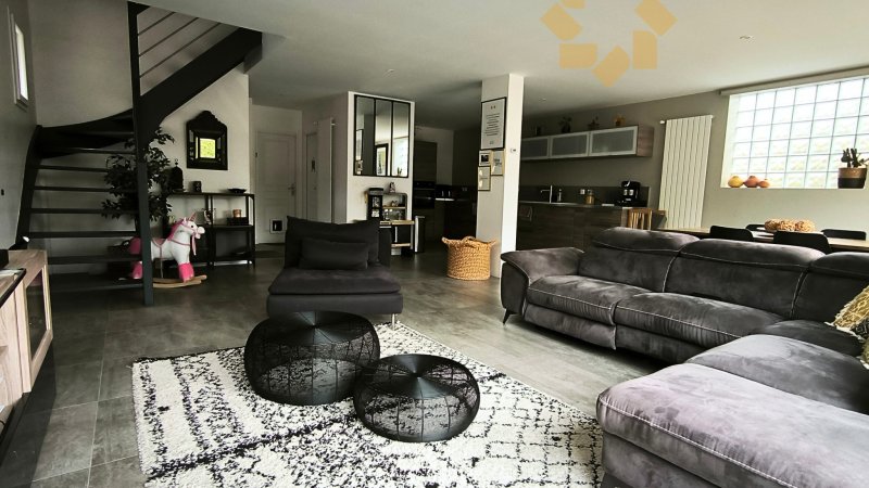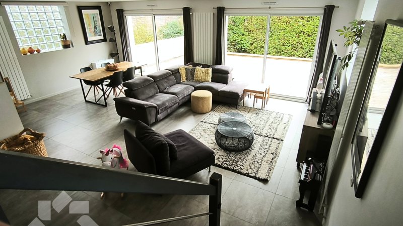 Épinay-sur-Orge Maison individuelle construite en 2018 de 132 m2 habitable + grand garage, sur un terrain de 419 m2 orienté sud Située dans un secteur résidentiel pavillonnaire calme et proche des transports en commun. Construite en 2018, elle dispose de prestation de qualité et de volumes agréables. Son orientation optimale lui offre une belle luminosité. Le rez-de-chaussée est composé d'une grande entrée avec placard et WC indépendant, et d'une grande pièce de vie de 50m2 environ comprenant salon, séjour et cuisine américaine équipée. Ce niveau dispose aussi d'un grand garage de 21m2 et d'un cellier. L'étage offre une suite parentale avec un véritable dressing et une salle d'eau privative d'une superficie de 20 m2 environ, deux chambres de 13m2, une salle de bain, et un WC indépendant. A l'extérieur, nous y trouvons 5 places de stationnement, une grande terrasse et un jardin exposé plein sud. Cette villa est équipée d'une Pompe à chaleur avec climatisation, de menuiseries double vitrage avec volets roulants électriques, d'un portail coulissant motorisé, d'un système visiophone avec alarme, d'une VMC hygroréglable, d'un chauffe-eau thermodynamique, d'une isolation ++ et plus généralement de matériaux de qualité. A proximité des écoles, médecins, services, commerces, ainsi que du RER et d'un arrêt de BUS à 1 min. Prix : 469.800 EUR (honoraires inclus charge vendeur) DPE classe énergétique B