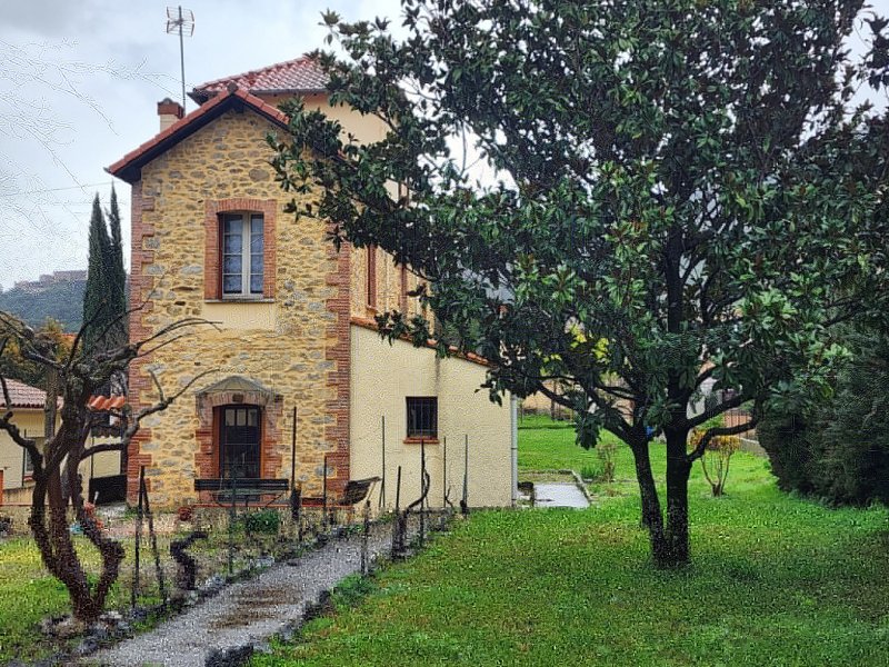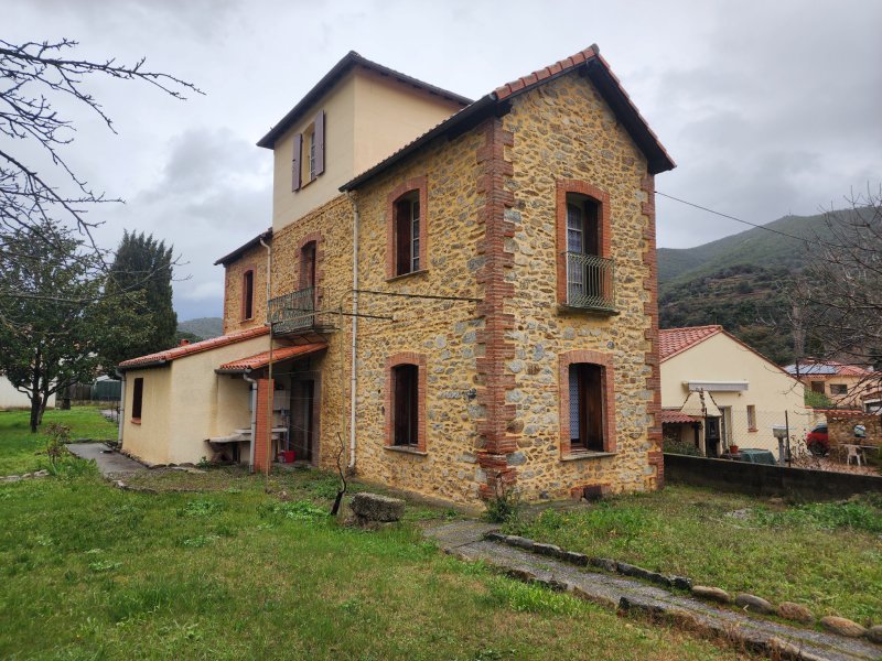 Située sur la commune d'Arles sur Tech à proximité des cures thermales d'Amélie les Bains, nous vous proposons de découvrir une charmante maison des année 50 édifiée sur une parcelle de 950m2 proposant de nombreuses possibilités à ses futurs propriétaires. La maison est répartie sur 3 niveaux. En rez-de-chaussée vous entrez sur un beau séjour de 30m2, un couloir dessert une cuisine séparée, des toilettes indépendants et une spacieuse chambre. Un magnifique escalier en bois vous conduira sur un pallier amenant à 2 autres très grandes chambres et une salle de bains avec wc. Enfin, le troisième étage dispose d'une chambre, idéal pour un adolescent. Vous disposerez également au sous-sol d'une cave permettant d'optimiser le rangement. L'extérieur offre un beau terrain paysagé de 950m2 avec une vue imprenable sur les montagnes environnantes. Enfin, un garage est présent dans la grande l'allée amenant à cette charmante maison située en retrait de la route et au calme. Beaucoup de potentiel pour cette maison alliant poutres apparentes, pierres et plancher d'origine. Taxe foncière: 1336EUR. Pour plus de renseignements, contacter Manuela ASSUMPCAO au 06 12 54 96 57 ou m.transaction@cabinet-clemenceau.fr