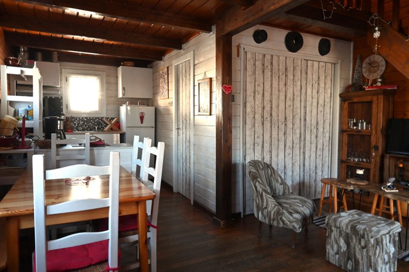 Un charmant chalet divisé en deux logements situé à EYNE STATION dans un secteur calme, comprenant :