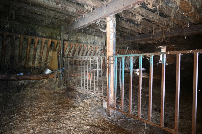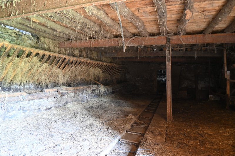 Au premier étage 3 pièces principales permettant le stockage de balles de foin. Très beau panorama en extrémité Sud ( Plancher + poutres à déposer pour réfection complète).