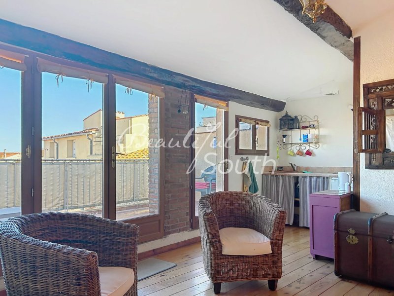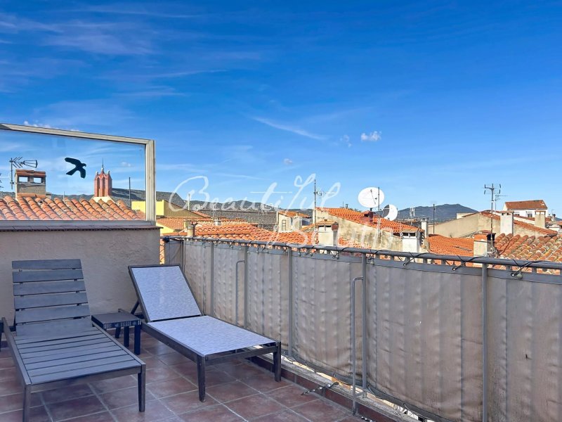 La grande terrasse exposée Est constitue un véritable atout, offrant une vue imprenable sur les toits du village. Parfaite pour des moments de détente ou des repas en plein air, cette maison rare sur le secteur invite à profiter pleinement de la douceur de vivre catalane.