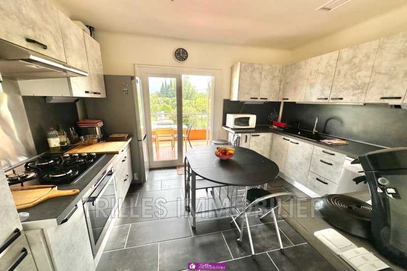 Un vaste séjour baigné de lumière s'ouvre sur une terrasse panoramique où chaque instant devient une carte postale. La cuisine indépendante et équipée, permet de savourer le calme ambiant tout en profitant d'un accès direct à l'extérieur.