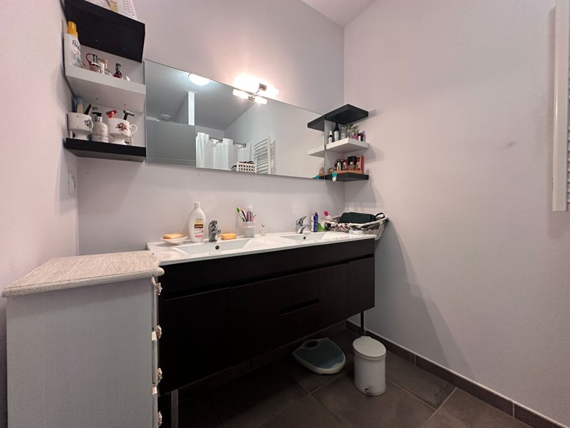 Vous avez une pièce de vie avec cuisine ouverte sur un séjour/salon de 46m² qui donne accès sur l'extérieur. Une suite parentale et deux belles chambres avec placard, une salle d'eau et une buanderie pouvant accueillir moto ou vélo.