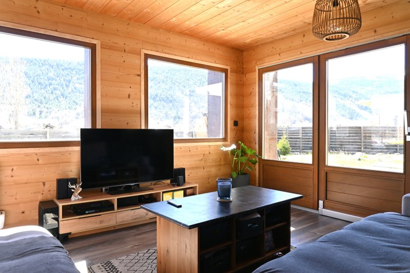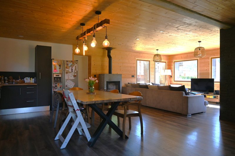 Rez-de-jardin : Spacieux Salon/Séjour - Cuisine ouverte - Dégagement - WC indépendant - Buanderie - Garage.