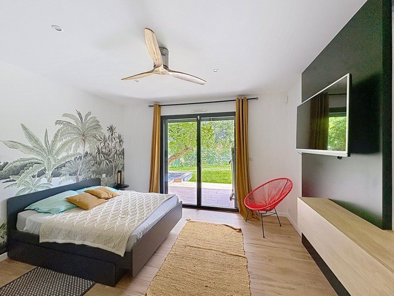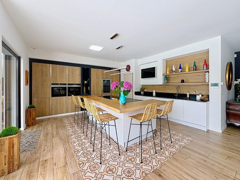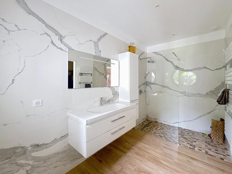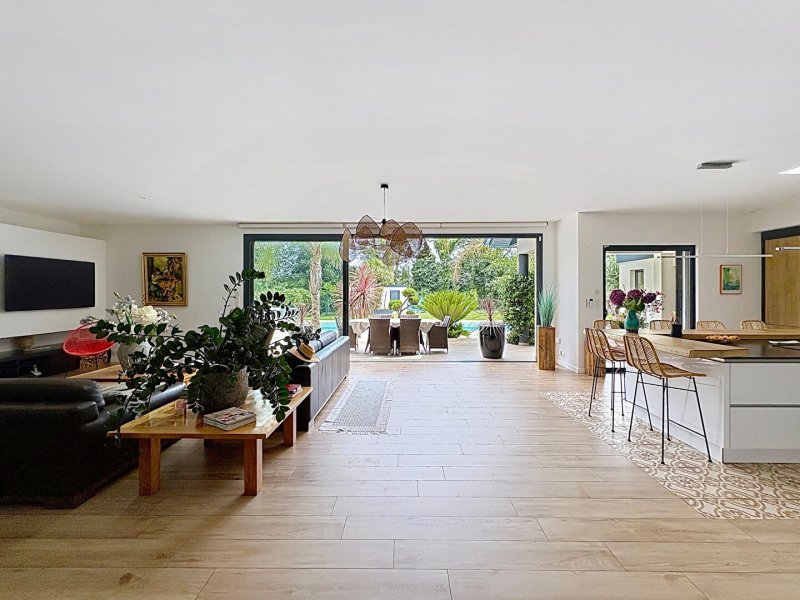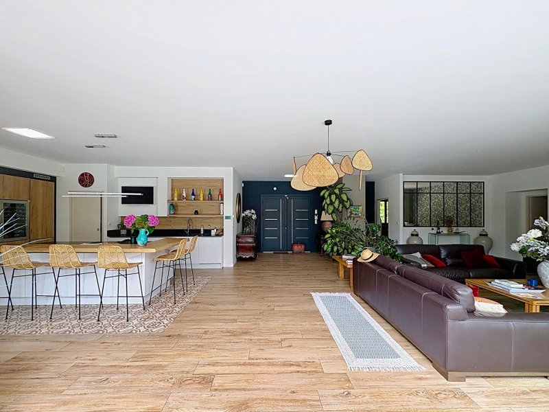 La maison principale, d'une surface de 275 m², séduit par ses volumes et la qualité de ses prestations. Elle propose une pièce à vivre spacieuse de près de 100 m² avec une cuisine aménagée et équipée signée La Grone, donnant accès à une cuisine d'été de 35 m². L'espace de vie est complété par un bureau de 14 m² avec vue sur le salon. Côté nuit, la maison comprend deux suites parentales avec salle de bain et dressing privatifs, ainsi que deux chambres supplémentaires disposant d'une salle de bain communicante.