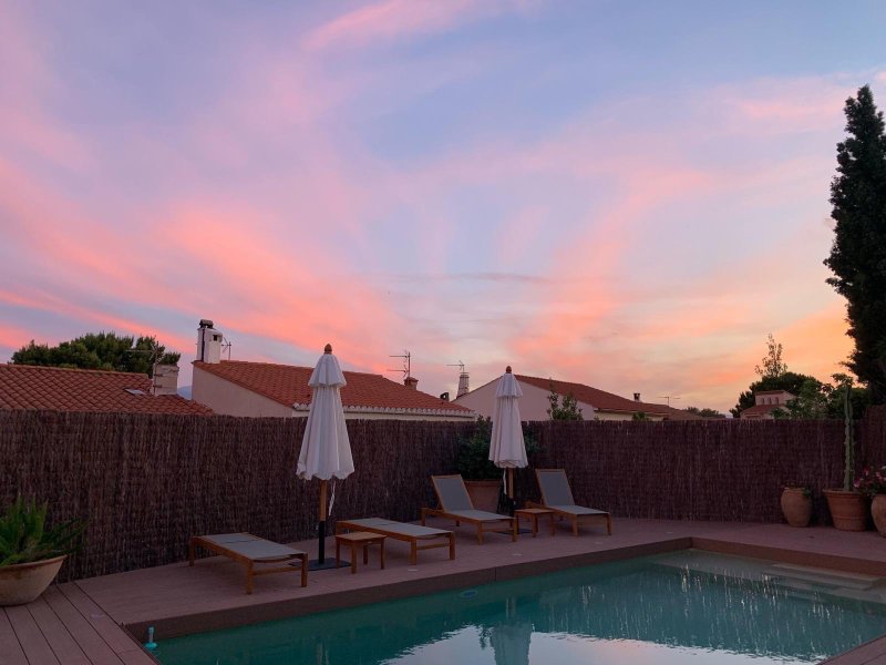Magnifique Villa Méditerranéenne F5 d'environ 150 m2 avec piscine sans vis à vis idéalement située au calme dans un secteur residentiel. Prestations haut de gamme État irréprochable Idéalement située à proximité de toutes les commodités, cette splendide villa méditerranéenne R+1 de 150 m2, édifiée sur une parcelle de 511 m2 sans aucun vis-à-vis, offre un cadre de vie privilégié entre confort moderne, élégance architecturale et ambiance chaleureuse. Dès l'entrée, un portail électrique ouvre sur une allée permettant de stationner aisément 3 véhicules au sein du jardin soigné. Au rez-de-chaussée : Un hall d'entrée dessert une pièce de vie exceptionnelle, composée d'un immense séjour salle à manger cuisine ouverte, baigné de lumière grâce à ses grandes baies vitrées aluminium double vitrage avec volets électriques. L'intérieur se prolonge naturellement vers l'extérieur, offrant une sensation d'espace remarquable. Une cheminée à foyer fermé vient sublimer ce niveau, idéale pour de chaleureuses soirées d'hiver tout en garantissant une économie de chauffage. Vous trouverez également : Une chambre avec dressing, Une salle d'eau avec toilette, Un garage attenant. Côté extérieur : un véritable havre méditerranéen Une grande terrasse avec store banne, Un espace barbecue convivial, Une splendide piscine de 9 m x 4 m, chauffée, avec douche d'été, Une terrasse en bois autour du bassin, totalement sécurisée (clôture + bâche de sécurité), Un local technique dédié. Un espace pensé pour profiter pleinement des beaux jours, en famille ou entre amis. À l'étage : 3 belles chambres avec dressing, dont une avec mezzanine et terrasse privée, Une salle de bain et de douche avec doubles vasques, Un toilette indépendant. Les atouts majeurs : Climatisation réversible dans toutes les pièces, Menuiserie Alu/Pvc double vitrage avec volet éléctrique Excellente isolation performance énergétique B, Aucun vis-à-vis, environnement résidentiel calme, Villa en parfait état, entretenue avec soin, Produit rare sur le marché, disponible immédiatement. Une villa coup de coeur où l'élégance méditerranéenne rencontre le confort moderne. Vous n'aurez plus qu'à poser vos valises et profiter de ce cadre de vie exceptionnel. Visite rapide possible après échange téléphonique bien très recherché !