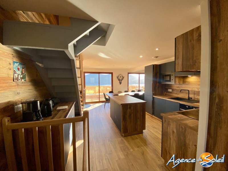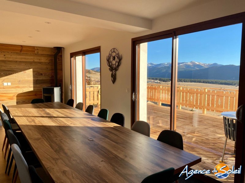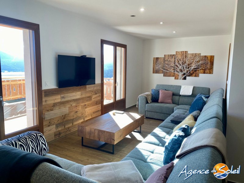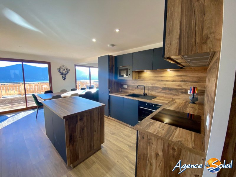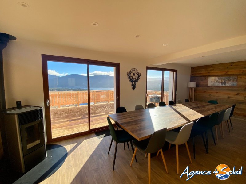 Agence du Soleil - LES ANGLES - COEUR DE VILLAGE - 1ère ligne du lac - Maison F6 de 2023 - 132.15m² Découvrez cette somptueuse maison d'environ 132.15m² construite en 2023, située au coeur du village historique, alliant charme authentique et confort moderne. Cette propriété d'exception offre des prestations haut de gamme pour accueillir jusqu'à 16 personnes. Caractéristiques principales : Surface habitable : 132.15m² Capacité d'accueil : 16 personnes Chambres : 4 Salles d'eau : 3 WC séparés : 3 Stationnement : Garage attenant, 2 places de parking extérieures et 1 place intérieure Espaces extérieurs : 2 terrasses avec vue imprenable sur le lac et les montagnes, dont une équipée d'un brasero Pièces de vie : 2 grands séjours, dont un agrémenté d'un poêle à granulés Style architectural : Design moderne mettant en valeur des matériaux nobles Dès l'entrée, vous serez séduit par l'élégance contemporaine de cette demeure, où chaque détail a été pensé pour offrir un cadre de vie exceptionnel. Les deux vastes séjours sont baignés de lumière naturelle, créant une atmosphère chaleureuse et conviviale. Le poêle à granulés ajoute une touche de confort supplémentaire lors des soirées plus fraîches. Les terrasses panoramiques sont de véritables invitations à la détente, offrant des vues à couper le souffle sur le lac scintillant et les majestueuses montagnes environnantes. L'une des terrasses est dotée d'un brasero, idéal pour des soirées en plein air inoubliables. La cuisine américaine de cette propriété est un véritable chef-d'oeuvre de design et de fonctionnalité. Ouverte sur le séjour et équipée d'un îlot central spacieux, elle offre un espace convivial idéal pour les moments en famille ou entre amis est équipée d'appareils de haute qualité et de finitions premium. Les quatre chambres offrent un espace généreux et confortable, tandis que les trois salles d'eau modernes et les trois WC séparés assurent une commodité optimale pour tous les occupants. Atouts supplémentaires : Emplacement privilégié : Située au centre d'un village historique, la propriété bénéficie d'un accès facile aux commodités locales tout en offrant un cadre paisible.Matériaux de qualité : L'utilisation de matériaux nobles confère à la maison une allure sophistiquée et durable.Stationnement aisé : Avec un garage attenant et plusieurs places de parking, le stationnement est facilité pour vous et vos invités.Cette maison est une opportunité rare sur le marché, combinant emplacement historique, vues panoramiques et prestations de luxe. Ne manquez pas l'occasion de devenir propriétaire de ce bijou immobilier. Pour plus d'informations ou pour organiser une visite, n'hésitez pas à nous contacter. Honoraires à la charge du vendeur. Classe énergie A, Classe climat A Montant estimé des dépenses annuelles d'énergie pour un usage standard : entre 790.00 et 1120.00 sur les années 2021, 2022 et 2023 (abonnements compris). Les informations sur les risques auxquels ce bien est exposé sont disponibles sur le site Géorisques : georisques.gouv.fr. . Retrouvez tous nos biens sur www.agencedusoleil.com