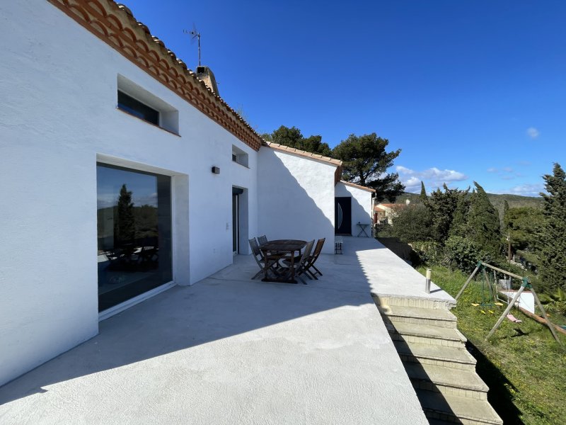 Llauro, village catalan au coeur des Aspres, à seulement quinze minutes de Thuir et Céret, villes dynamiques avec tous commerces où il y fait bon vivre. Pour les amoureux de la nature, belle villa quatre faces de construction traditionnelle comptabilisant 150m2 habitables nichée dans un écrin de verdure avec une vue imprenable sur toute la plaine du Roussillon. Dès l'entrée, vous serez séduits par la luminosité et les volumes, une cuisine de qualité entièrement équipée ouverte sur un salon /séjour aux volumes généreux avec plafond cathédrale, un dégagement, une salle de bain, un espace buanderie, un wc et une spacieuse chambre. A l'étage, une mezzanine desservant deux chambres dont une avec terrasse attenante, une salle de bains, un bureau et différents espaces à aménager selon ses besoins. Coté jardin, un grand garage, une belle terrasse et sa vue dégagée, une piscine traditionnelle, une dépendance offrant de nombreuses possibilités d'aménagement ! Vous apprécierez l'environnement, la vue dégagée, les dépendances et les volumes dans l'ensemble! Des rafraichissements sont à prévoir! Une visite s'impose sans tarder! « Les informations sur les risques auxquels ce bien est exposé sont disponibles sur le site Géorisques : www.georisques.gouv.fr »