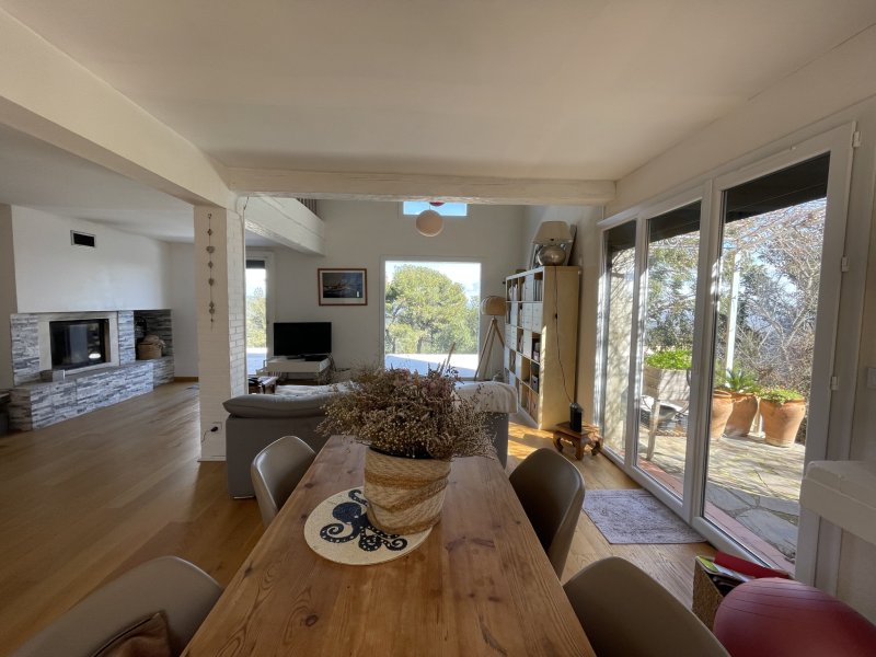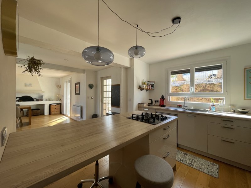 Llauro, village catalan au coeur des Aspres, à seulement quinze minutes de Thuir et Céret, villes dynamiques avec tous commerces où il y fait bon vivre. Pour les amoureux de la nature, belle villa quatre faces de construction traditionnelle comptabilisant 150m2 habitables nichée dans un écrin de verdure avec une vue imprenable sur toute la plaine du Roussillon. Dès l'entrée, vous serez séduits par la luminosité et les volumes, une cuisine de qualité entièrement équipée ouverte sur un salon /séjour aux volumes généreux avec plafond cathédrale, un dégagement, une salle de bain, un espace buanderie, un wc et une spacieuse chambre. A l'étage, une mezzanine desservant deux chambres dont une avec terrasse attenante, une salle de bains, un bureau et différents espaces à aménager selon ses besoins. Coté jardin, un grand garage, une belle terrasse et sa vue dégagée, une piscine traditionnelle, une dépendance offrant de nombreuses possibilités d'aménagement ! Vous apprécierez l'environnement, la vue dégagée, les dépendances et les volumes dans l'ensemble! Des rafraichissements sont à prévoir! Une visite s'impose sans tarder! « Les informations sur les risques auxquels ce bien est exposé sont disponibles sur le site Géorisques : www.georisques.gouv.fr »