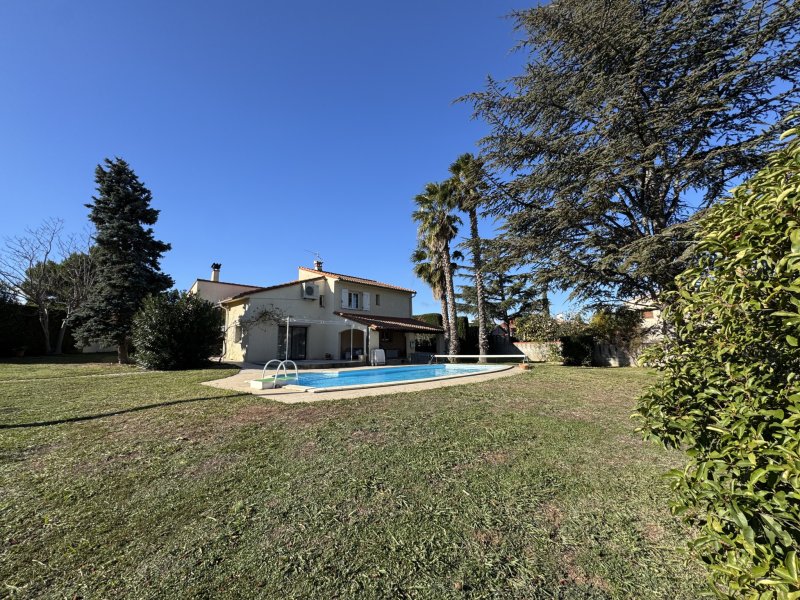 Située à Llupia, au coeur d'un quartier calme, prisé et à proximité immédiate des commerces et des écoles, cette villa de construction traditionnelle offre un cadre de vie privilégié. Edifiée sur une parcelle arboré de 2332 m2, elle séduit par ses beaux volumes, son environnement verdoyant et ses équipements confortables. En rez de chaussée, dès l'entrée vous serez accueilli par un vaste hall desservant un agréable salon/ séjour chaleureux avec de belles hauteurs sous-plafond agrémenté d'une cheminée insert avec répartiteur de chaleur, une cuisine indépendante entièrement équipée et attenante à une véranda lumineuse idéale pour profiter du jardin en toute saison. Coté nuit, un grand dégagement, quatre spacieuses chambres avec placards, salle d'eau avec wc, salle de bains et wc indépendant. Vous apprécierez l'espace buanderie et cellier pour son aspect pratique. Au niveau inférieur, une cusine d'été et un wc indépendant avec accès direct au jardin et à l'espace piscine, également un accès au vide-sanitaire, une cave et un grand garage de 32m2 parfait pour le stationnement, le rangement ou les activités de bricolage. La maison est équipée de prestations modernes qui assurent un excellent confort thermique : pompe à chaleur, climatisation réversible gainable, doubles vitrages alu et volets PVC. A l'extérieur vous serez séduits par le cadre naturel exceptionnel, un parc arboré offrant ombre et intimité, ainsi qu'une piscine traditionnelle 10/5 idéale pour profiter des beaux jours en famille ou entre amis. Une grande allée pour stationner plusieurs véhicules à l'intérieur de la propriété et un carport vient compléter les espaces de stationnement. Cette villa offre un véritable havre de paix, à seulement quelques minutes des commodités, une belle opportunité pour ceux qui recherchent le charme de l'ancien, la tranquillité d'un quartier privilégié et de beaux volumes tant à l'intérieur qu'à l'extérieur. Contactez nous pour organiser une visite! « Les informations sur les risques auxquels ce bien est exposé sont disponibles sur le site Géorisques : www.georisques.gouv.fr »