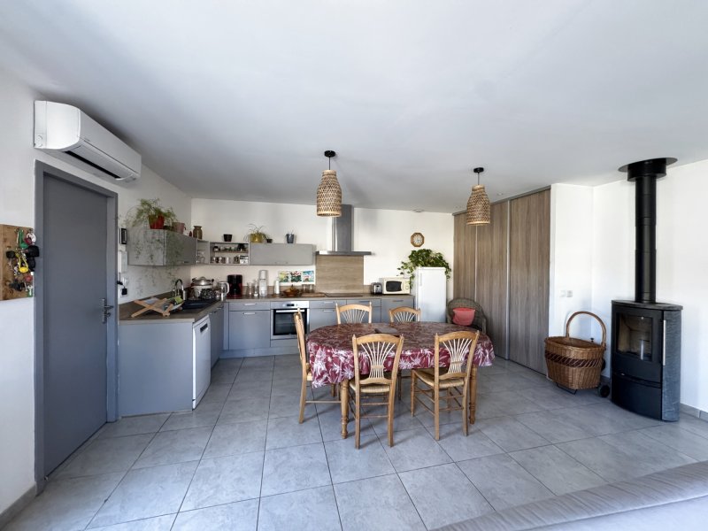Au coeur des Aspres, située dans un quartier calme et recherché de Llupia, village dynamique à proximité immédiate de Thuir et dix minutes de Perpignan. Cette charmante villa de plain-pied à deux pas des commerces, écoles et commodités, offre un cadre de vie idéal pour une famille ou un couple recherchant tranquilité et confort. Edifiée en trois faces sur un terrain arboré de 389m2, elle developpe 84m2 habitables, complétés par une pièce aménagée de 16m2 comprenant espace de rangement, buanderie et wc supplémentaire. Vous serez séduits par un spacieux salon/ séjour de 42m2 lumineux et convivial équipé d'un poêle à bois et de la climatisation réversible, la cuisine est fonctionelle, la pièce à vivre est attenante à une belle terrasse de 25m2 exposée sud-est idéale pour accueillir les convives et profiter du soleil! Coté nuit, trois chambres, un dégagement, une salle d'eau et un wc indépendant. Coté jardin, une piscine hors-sol semi enterrée, une dépendance pratique pour le stockage et les outils de jardin, un abri Bois, possibilité de potager et d'aménagements selon vos envies. La villa est équipée de panneaux photovoltaiques, ce qui lui permet une auto-consommation maitrisée et également une partie revente. Vous apprécierez l'allée pour stationner les véhicules, le calme du secteur et l'architecture de la maison! Contactez nous pour plus de renseignements et organiser une visite! «Les informations sur les risques auxquels ce bien est exposé sont disponibles sur le site Géorisques : www.georisques.gouv.fr »