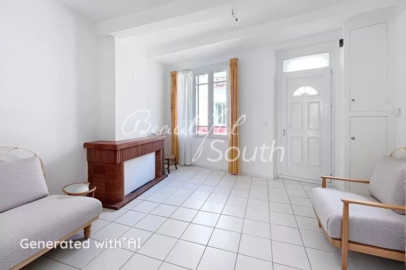 Au rez-de-chaussée, elle offre une cuisine équipée ouverte sur une terrasse exposée plein sud, un salon lumineux, deux chambres, une salle de bains avec WC, ainsi qu’un accès direct au garage de 25 m² avec mezzanine. Un cellier complète cet espace avec des possibilités de rangement supplémentaires.