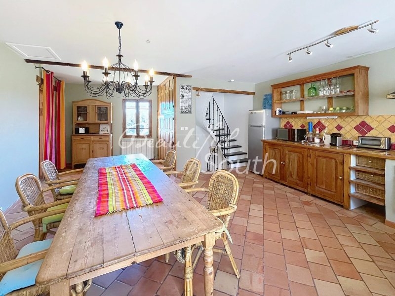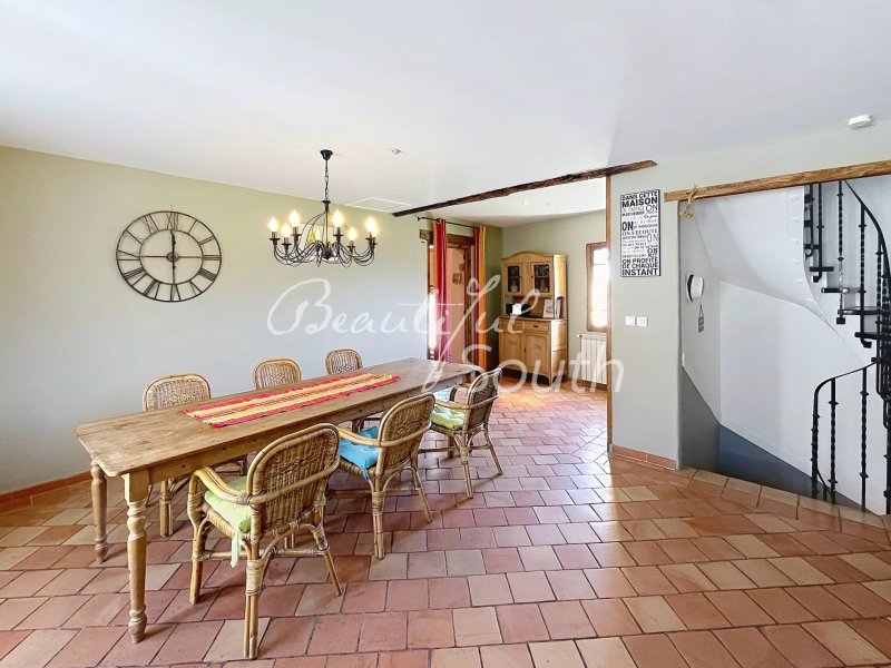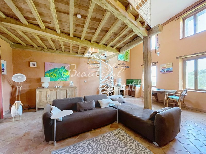 Niché dans le charmant village perché de Montalba-le-Château, au cœur des Pyrénées-Orientales, ce bien d'exception est le fruit de la réunion de deux maisons de village en une seule et spacieuse demeure de 112 m², alliant charme authentique et caractère du Sud. Pierres apparentes, poutres en bois et carreaux catalans d'origine confèrent à l'ensemble une atmosphère chaleureuse et intemporelle, typique de l'architecture rurale catalane. Le bien est vendu entièrement meublé, permettant une prise en main immédiate. Le rez-de-chaussée accueille un hall d'entrée donnant accès à un premier garage pouvant aisément abriter un véhicule, avec espace buanderie et chaudière de chauffage central, ainsi qu'un placard de rangement sous escalier. Un second garage, disposant d'un accès indépendant depuis l'extérieur, offre un espace de rangement ou de stationnement supplémentaire, idéal pour vélos, outils ou matériel de loisirs. Au premier étage, une belle cuisine aménagée et équipée avec espace repas ouvre sur un généreux salon avec poêle à bois, agrémenté d'une mezzanine accessible par un escalier en colimaçon — idéale en espace bureau ou coin lecture. Le second étage propose trois chambres,...