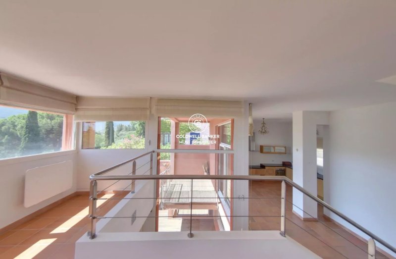 Côté extérieur, un jardin méditerranéen facile d’entretien entoure une large terrasse plein sud et une belle piscine à débordement. Cette dernière nécessitera quelques travaux pour retrouver tout son éclat, mais son potentiel reste exceptionnel.