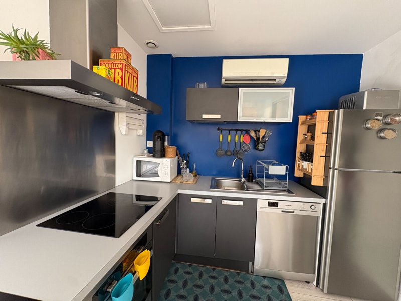 Au deuxième et dernier niveau, nous retrouvons une cuisine aménagée et équipée donnant sur une terrasse de 15 m².
