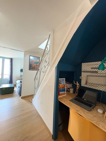 Au premier étage un beau salon lumineux, une deuxième chambres avec dressing, un coin bureau et un deuxième wc séparé.