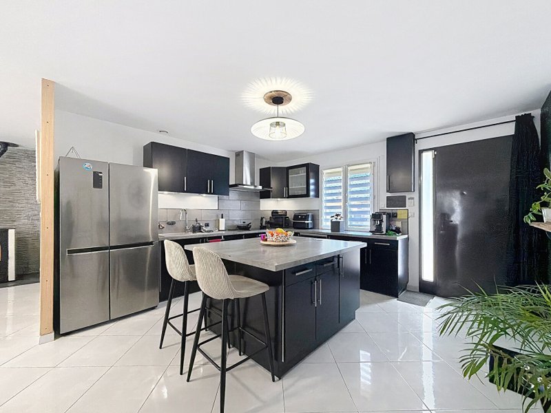 Elle se compose d'une belle pièce de vie de 46 m², lumineuse et conviviale, intégrant une cuisine aménagée et équipée, ouverte sur le séjour. Un espace chaleureux avec poêle à granulés complète cet ensemble, idéal pour des moments confortables en toute saison.