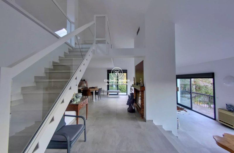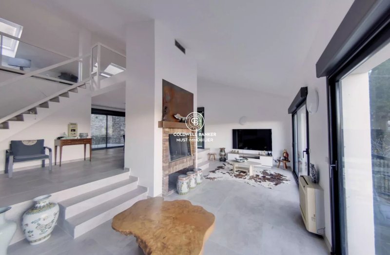 Perchée sur les hauteurs des Albères, cette somptueuse villa d’architecte rénovée allie matériaux nobles, modernité et prestations de qualité. Édifiée sur une parcelle arborée de 2400 m², elle offre une vue panoramique sur les montagnes.