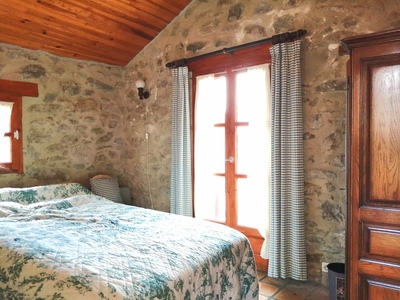 2ème étage : couloir, salle de bain avec wc, chambre donnant accès à un balcon qui mène vers la tour qui a été transformé en chambre .