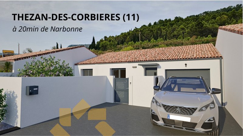 VILLA DE PLAIN PIED de 87 m2 habitables Sur un Terrain de 315 m2 Grand Salon Séjour Cuisine de 42 m2 3 CHAMBES SALLE DE BAIN WC De nombreux placards et dressing Garage + 2 places stationnements Piscine possible en 6x3 Grande terrasse Construction respectant la règlemention énergétique 2020 THÉZAN-DES-CORBIÈRES bénéficie de toutes les commodités : écoles, commerces, services publics, médecins... 'Au carrefour entre littoral Audois et Corbières, encerclé par plusieurs Parcs Naturels, un lieu idéal pour profiter de magnifiques randonnées et de produits locaux de qualité' 20 min de Narbonne 15 min de Lézignan 25 mis des Plages 45 min de Perpignan Dans un nouveau quartier aéré et végétalisé avec des constructions de PLAIN PIED imposées afin de garantir l'absence de vis-à-vis. Projet complet avec aménagements extérieurs, terrasse, végétaux, cuisine équipée, peintures, placards...