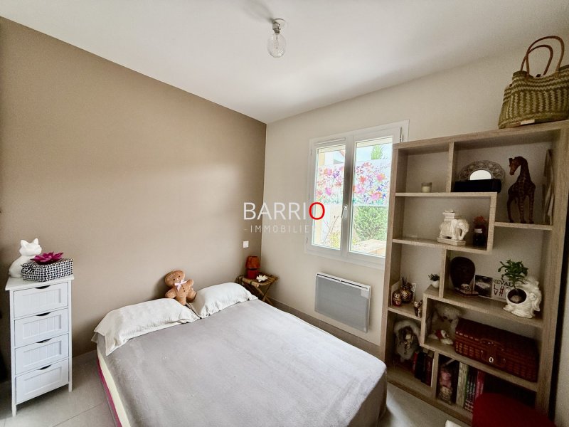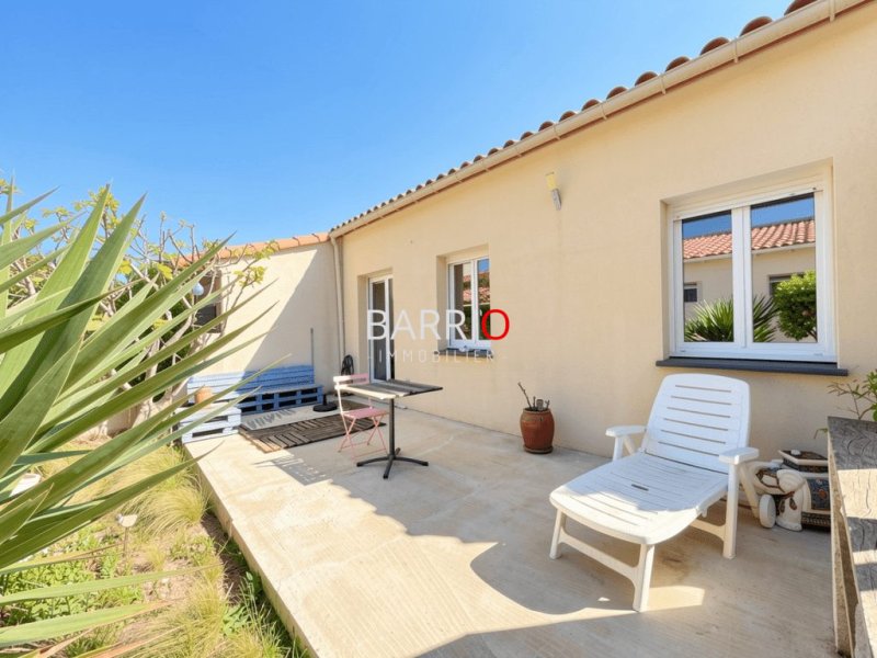 Dans le charmant village d'Ortaffa, à quelques minutes de la côte méditerranéenne, découvrez cette maison de plain-pied construite en 2018, située dans un environnement calme et résidentiel. D'une surface d'environ 63 m², elle offre une belle pièce de vie lumineuse de 37 m² avec cuisine américaine moderne, idéale pour des moments conviviaux. Côté nuit, vous trouverez deux chambres avec placards, une salle d'eau avec double vasque et un WC indépendant. À l'extérieur, profitez de plusieurs terrasses ensoleillées et d'un jardin arboré sans vis-à-vis. Un garage avec mezzanine et coin buanderie complète le bien, ainsi qu'une place de parking privative. Prestations de qualité : double vitrage, menuiseries PVC, volets roulants électriques, climatisation réversible, chauffe-eau thermodynamique. Aucun travaux à prévoir. Pour plus d'informations ou organiser une visite, contactez l'agence. Honoraires inclus de 3.91% TTC à la charge de l'acquéreur. Prix hors honoraires 217 400 . Classe énergie B, Classe climat A Montant moyen estimé des dépenses annuelles d'énergie pour un usage standard, établi à partir des prix de l'énergie de l'année 2021 : entre 439.00 et 595.00 . Les informations sur les risques auxquels ce bien est exposé sont disponibles sur le site Géorisques : georisques.gouv.fr.