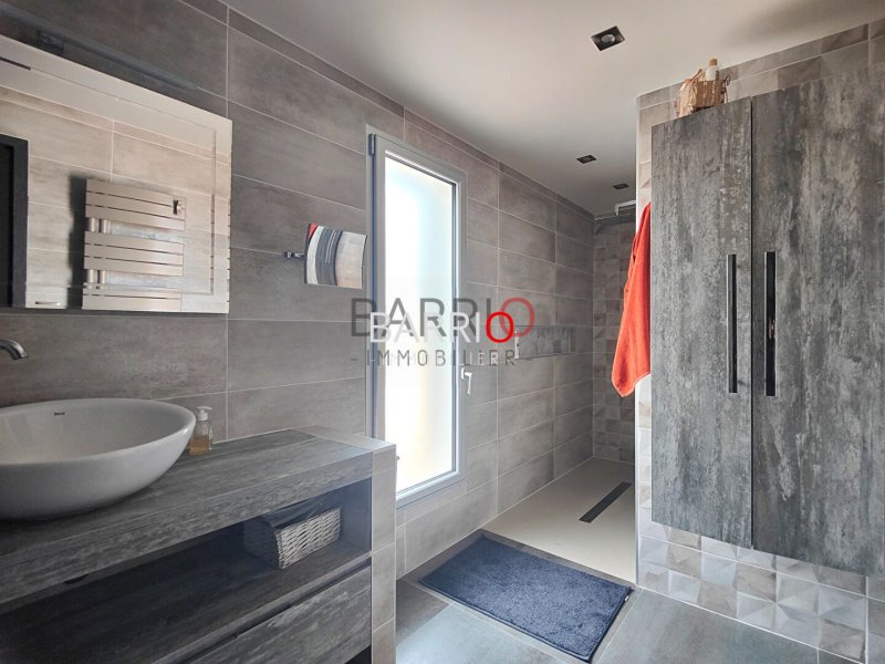 Cette villa de plain-pied est construite sur une parcelle de plus de 1100 m² sans aucun vis-à-vis. Elle est composée d'un grand hall d'entrée avec placard, d'un séjour cathédrale avec un bureau en mezzanine, d'une cuisine équipée avec îlot central et d'un WC indépendant. Deux chambres avec grand dressing composent le coin nuit, avec une salle d'eau et douche à l'italienne, plus un WC. Une buanderie et une troisième chambre avec accès indépendant et salle d'eau occupent une autre aile de la maison. Une villa climatisée de 4 faces, entièrement rénovée, avec dépendances et piscine au sel, plus de panneaux photovoltaïques en auto-consommation et revente, des stores bannes électriques et des menuiseries en aluminium. A visiter d'urgence ! Honoraires inclus de 3.8% TTC à la charge de l'acquéreur. Prix hors honoraires 500 000 . Classe énergie B, Classe climat A. Les informations sur les risques auxquels ce bien est exposé sont disponibles sur le site Géorisques : georisques.gouv.fr.