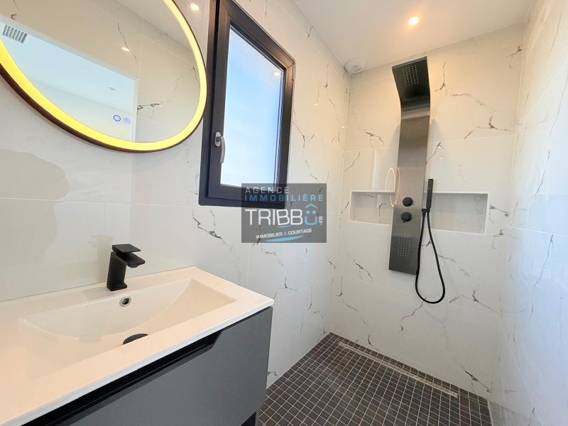 NOUVEAUTE TRIBBU ! Située dans un environnement résidentiel paisible, à proximité immédiate de la nature et à seulement quelques minutes de Thuir, cette villa neuve conforme à la réglementation RE 2020 offre un cadre de vie moderne et confortable. Développant environ 118 m2 habitables, en R+1 et en deux faces, elle est édifiée sur une parcelle de 290 m2, avec stationnements à l'avant et un bel espace jardin avec terrasse à l'arrière. Le rez-de-chaussée accueille une entrée menant à une vaste pièce de vie lumineuse d'environ, ouverte sur l'extérieur, intégrant un espace cuisine à aménager selon vos envies. Ce niveau propose également une suite parentale avec dressing et salle d'eau, un WC indépendant et un garage d'environ 20m2 bénéficiant d'une belle hauteur sous plafond. À l'étage, un dégagement dessert deux chambres spacieuses avec rangements, ainsi qu'une salle d'eau et un second WC. La maison bénéficie de prestations actuelles et soignées répondant aux standards de confort et de performance énergétique, le tout dans un environnement sans vis-à-vis, idéal pour une vie familiale au calme. Pour plus d'informations ou pour organiser une visite, contactez-nous dès maintenant ! Une visite virtuelle à 360o est également disponible sur notre site internet TRIBBU. Vous êtes intéressé par ce bien ? TRIBBU vous propose une étude gratuite et personnalisée pour trouver la solution de financement la mieux adaptée grâce à notre service de courtage.