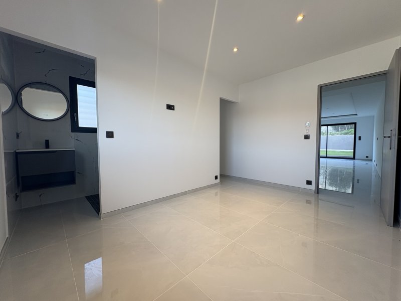 Villa neuve T4 118 m2 habitables RE 2020 Terrasse, jardin et garage Implantée dans un environnement résidentiel calme, à proximité immédiate de la nature et à seulement 10 minutes de Thuir, cette maison neuve conforme à la réglementation RE 2020 offre des prestations modernes et un confort optimal. Développant 118 m2 habitables, en R+1 et deux faces, elle est édifiée sur une parcelle de 289 m2. À l'avant, un espace permet le stationnement de deux véhicules. À l'arrière, une terrasse de 36 m2 prolonge harmonieusement un jardin de 70 m2, directement accessible depuis la pièce de vie. Le rez-de-chaussée se compose d'une entrée, d'une vaste pièce de vie d'environ 55 m2, très lumineuse, d'une suite parentale avec dressing et salle d'eau, d'un garage de 20 m2 avec belle hauteur sous plafond. À l'étage, deux chambres spacieuses avec dressing, une salle d'eau soignée . Prestations de qualité : climatisation gainable Air Zone, volets roulants, ballon thermodynamique, fibre, exposition , pas de vis à vis ... « Les informations sur les risques auxquels ce bien est exposé sont disponibles sur le site Géorisques : www.georisques.gouv.fr » « Les informations sur les risques auxquels ce bien est exposé sont disponibles sur le site Géorisques : www.georisques.gouv.fr »