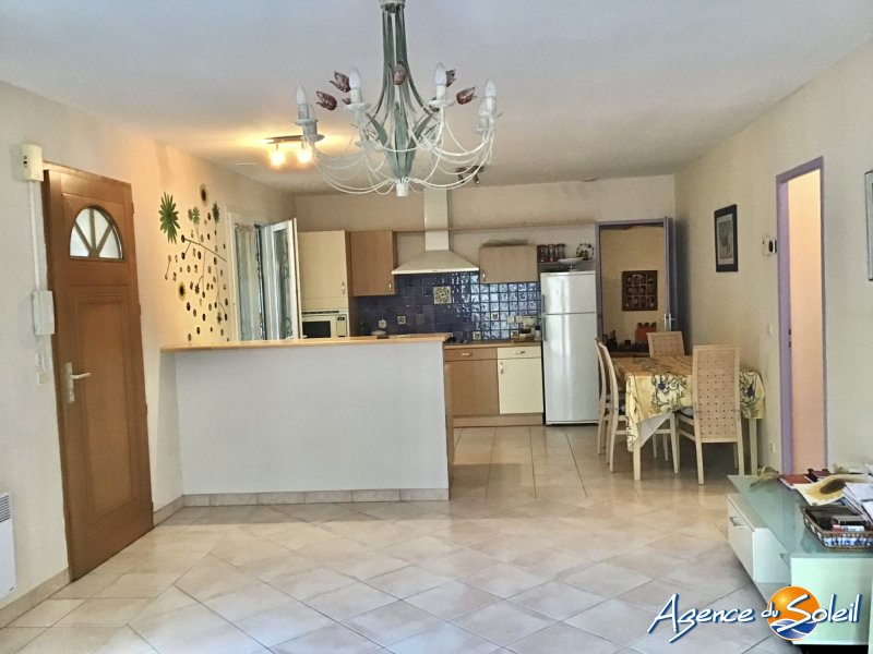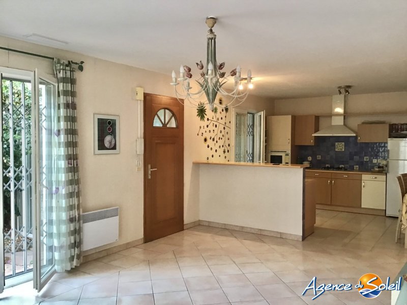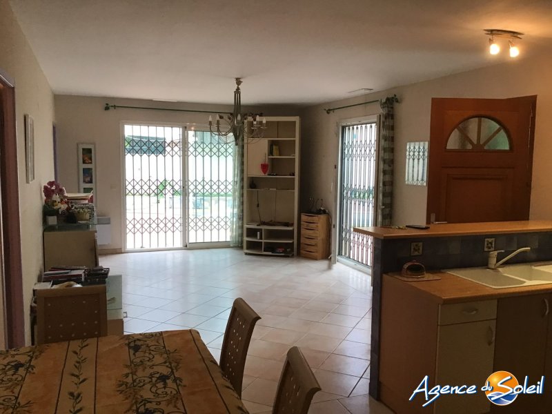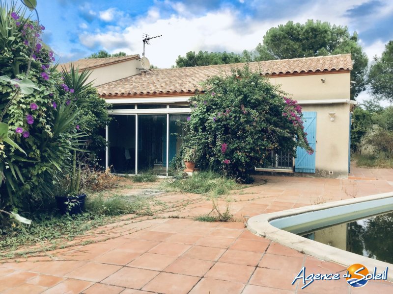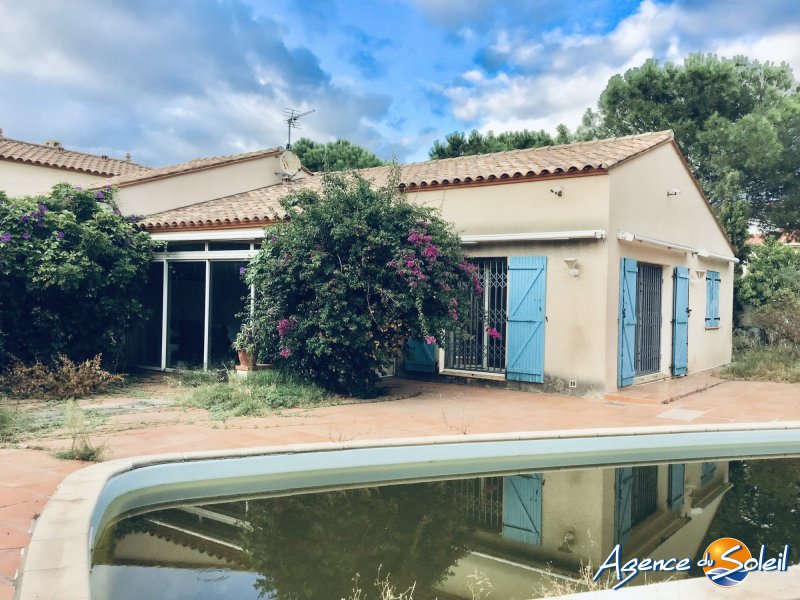 Sous compromis : Maison de plain pied individuelle de 85 m2 avec une piscine de 11 / 3.5m , un garage pouvant contenir deux véhicules et un espace atelier ; le tout sur un terrain de 590 m2 joliment arboré. Celle ci comprend un spacieux séjour , une cuisine ouverte équipée , une salle d'eau , deux grandes chambres et un WC indépendant. Elle se situe dans un quartier calme et recherché proche de toutes commodités ( Petits travaux de rafraichissement a prévoir ) Taxe foncière 2074 . Contactez Sabine Trédez au 06/40/12/98/76 Classe énergie C, Classe climat A Montant estimé des dépenses annuelles d'énergie pour un usage standard : entre 1000.00 et 1352.00 sur les années 2021, 2022 et 2023 (abonnements compris). Les informations sur les risques auxquels ce bien est exposé sont disponibles sur le site Géorisques : georisques.gouv.fr. . Retrouvez tous nos biens sur www.agencedusoleil.com