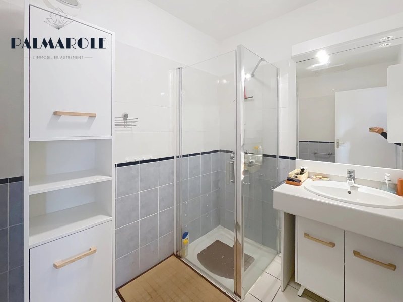 Elle offre un séjour lumineux avec cuisine ouverte, deux chambres équipées de quatre placards muraux, une salle d’eau et des toilettes.