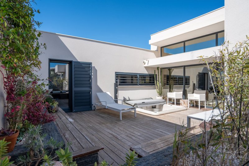 Parfaite alternative entre la grande maison avec jardin et l'appartement en copropriété impacté par des charges, cette villa d'architecte traversante de plain-pied, idéalement située sur la route des plages, dans un quartier ultra résidentiel proche de toutes les commodités, offre des qualités de construction particulièrement qualitatives et des prestations de standing. S'articulant autour d'un patio sans vis-à-vis et agrémenté d'un spa pour 4 personnes, ce T4 compte de nombreuses ouvertures mais aussi une belle hauteur sous plafond et il offre, de surcroît, un confortable garage et 3 places de parking privatives. Dans un état d'entretien exceptionnel, cette réalisation est un véritable coup de cur qui bénéficie encore pour quelques mois de l'assurance dommage-ouvrage et des garanties décennales des différents artisans.